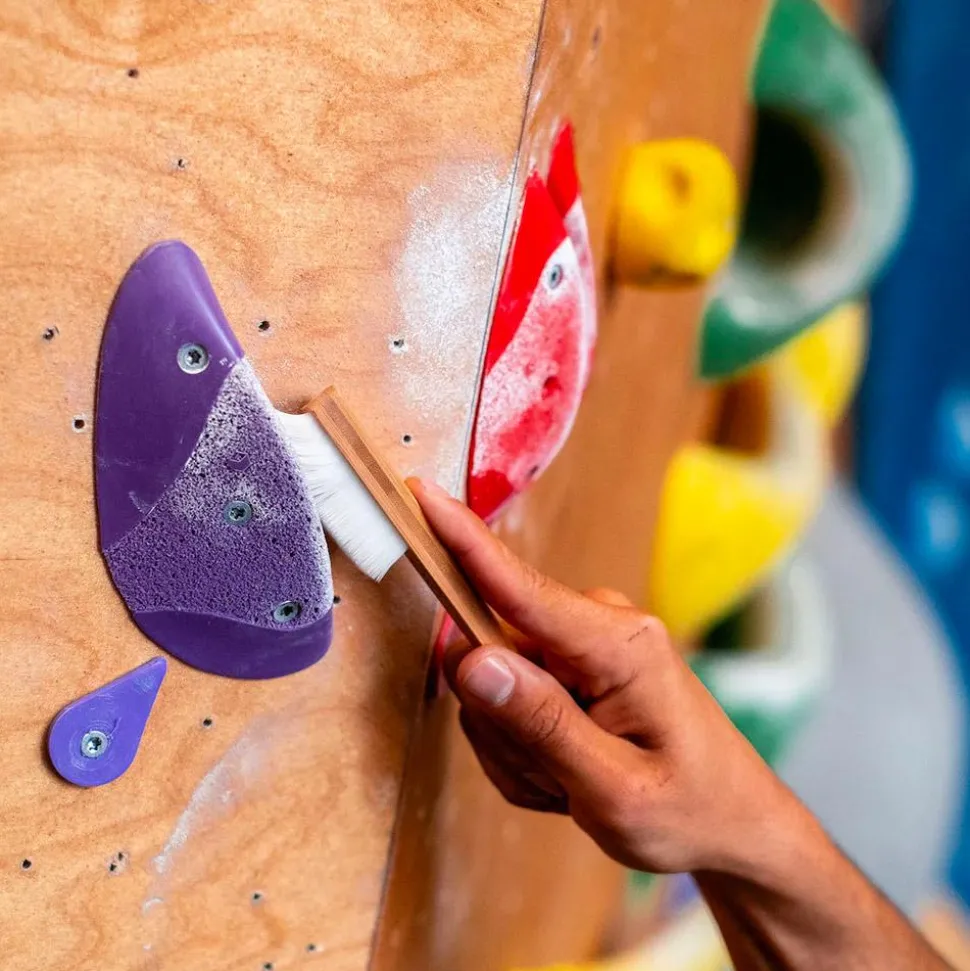 Idéale pour nettoyer minutieusement les prisesd’escalade en indoor, la brosse Infinity Brush S de marque YY Vertical est à la fois robuste et légère.