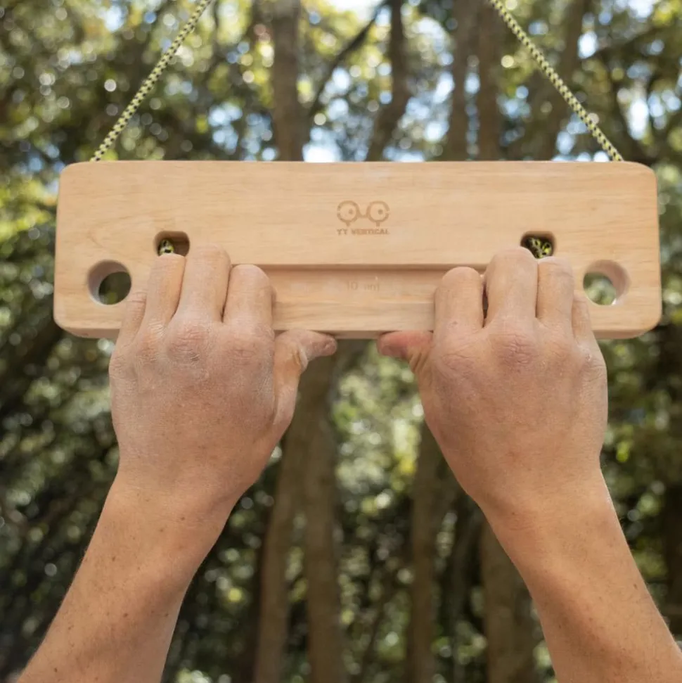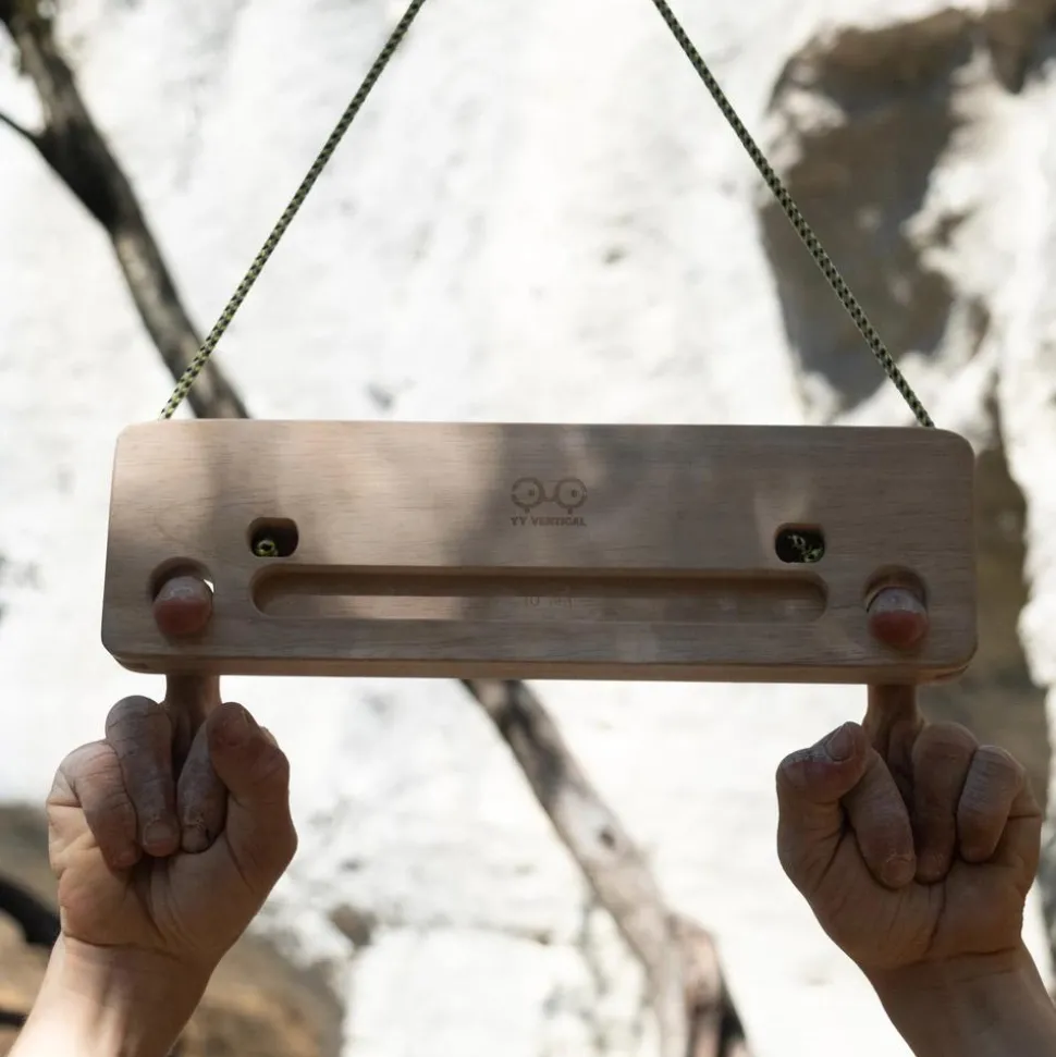 Le Travelboard de chez YY Vertical est une petite poutre entrainement escalade bois permettant de s’échauffer et de renforcer les doigts, bras et dos.