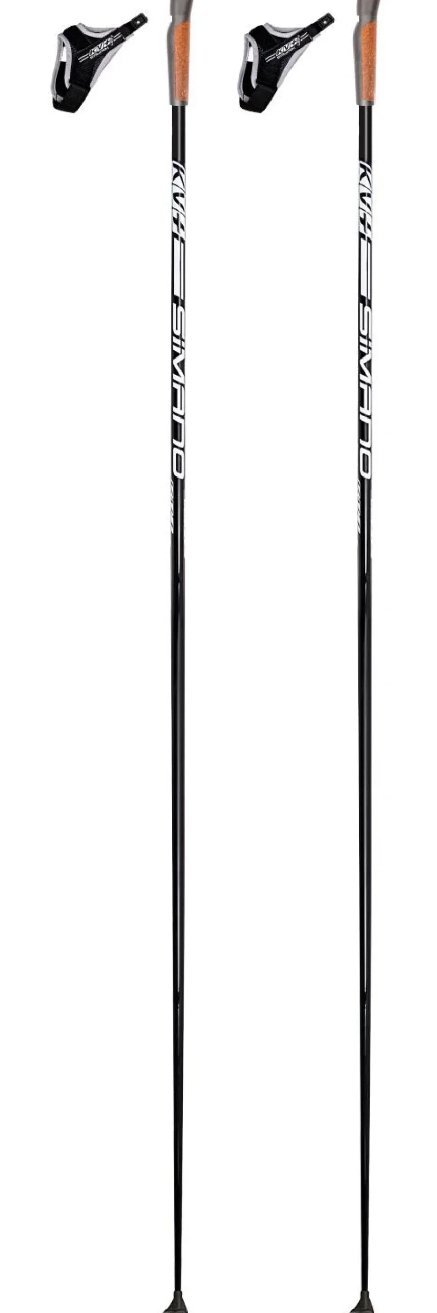 Le Simano est plus qu’un bâton bien placé en prix, et ses arguments techniques sont là pour le prouver. Équipé d’un tube 30% carbone il assure une rigidité déjà très satisfaisante pour des skieurs loisir ou occasionnels. Son plus gros avantage d’un point de vue pratique est le système clip qui relie la poignée à la dragonne et qui permet de les désolidariser en tirant simplement la languette en haut de la poignée. Cela paraît accessoire mais c’est extrêmement pratique lorsque l’on doit s’arrêter boire car il est inutile de retirer les straps. Un gain de temps indéniable, mais ce n’est pas le seul argument de ces poignées. Conçues avec la partie avant en liège elles offrent ce qui se fait de plus mieux en matière de confort et de préhension. Si l’on s’arrête sur la dragonne ergonomique, on s’aperçoit que sa largeur recouvre une bonne partie de la main, ce qui augmente le confort d’une part, mais qui a surtout l’avantage de fournir une zone de poussée plus importante en bas de la main et donc un meilleur transfert d’énergie en poussée. Un très beau bâton, robuste, tolérant et efficace.