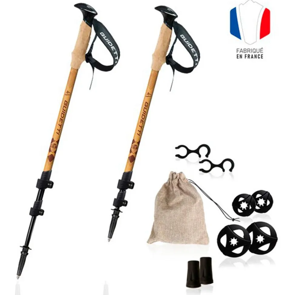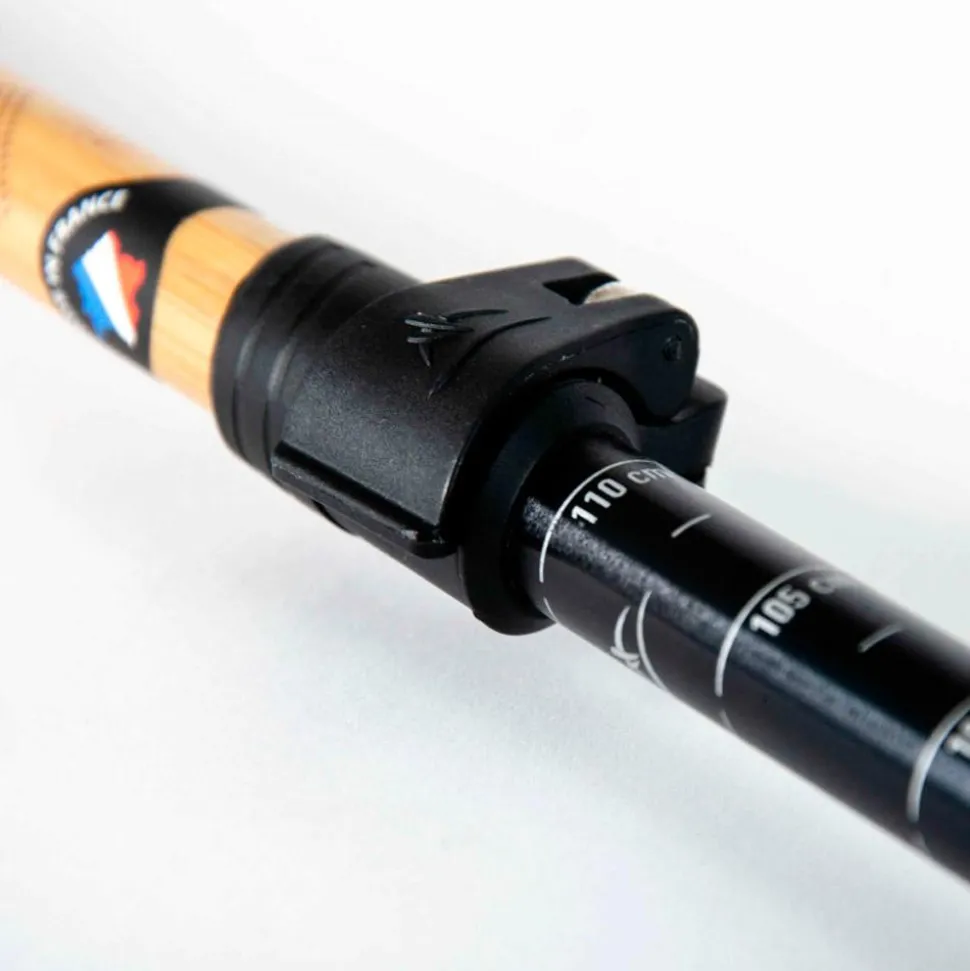 LeGuidetti Terre De Trek Evasionest un bâton de randonnée télescopique composé de trois brins en carbone et aluminium, avec un revêtement en bambou. Il est équipé d’un système de réglage à clapet externe en aluminium Easylock pour une adaptation facile à l’inclinaison du terrain. Il dispose également d’une poignée R-Go en liège agréable à la prise en main et de deux types de rondelles pour une utilisation polyvalente en été comme en hiver.