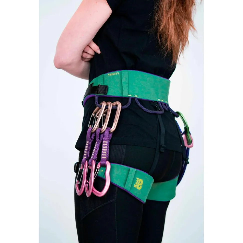 Le baudrier Beal Trinity affiche le meilleur rapport qualité-prix de sa catégorie, avec une conception conçue autour de la polyvalence et du confort, associant un ajustement précis à une structure légère. Doté de trois boucles ergonomiques travaillées, il s’ajuste facilement, quel que soit le gabarit, tandis que ses quatre tailles (S, M, L, XL) permettent d’adapter le maintien à chaque morphologie. Non genré, le baudrier favorise une répartition homogène de la charge grâce à deux sangles intégrées au rembourrage, optimisant la liberté de mouvement lors de l’escalade. Facile à enfiler et à régler, il comporte des porte-matériels rigides, un marquage L/R et un pontet coloré pour faciliter l’encordement. Disponible en rose et vert, il affiche un poids de 332 g en S et 420 g en XL.