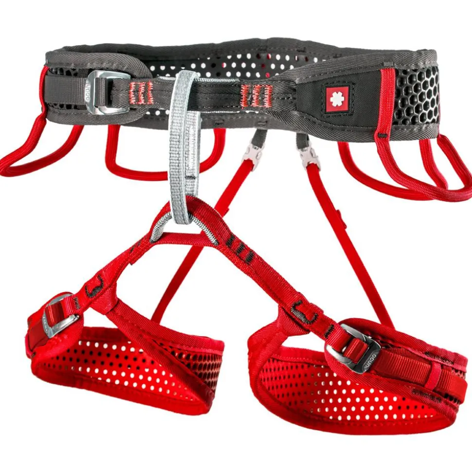 Le baudrier d’escalade Webee Lady Black Red d’Ocun, léger et confortable, propose 4 porte-outils, 3 boucles de serrage pour un ajustement optimal et une sécurité accrue.