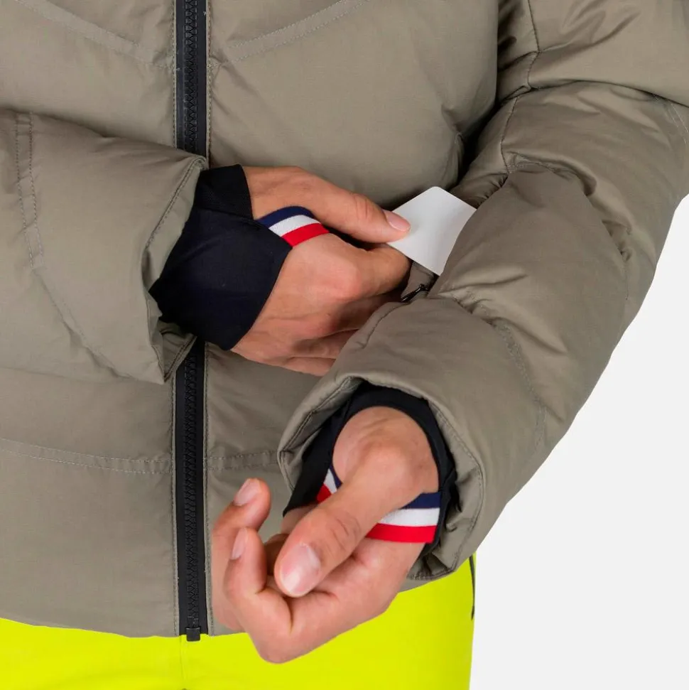 La veste de ski Rossignol Legacy Merino Down Dune allie imperméabilité 20K, respirabilitéet praticité avec ses poches fonctionnelles et sa capuche compatible casque.