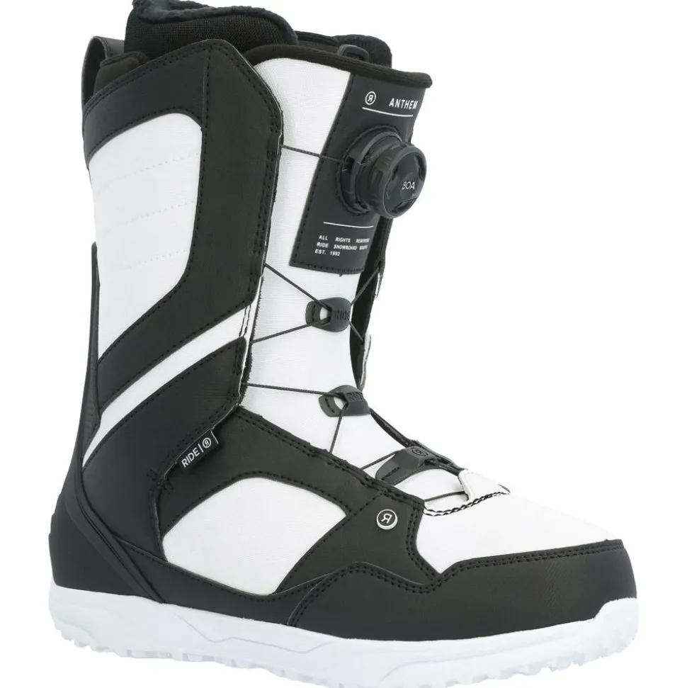 La boot de snowboard Ride Anthem White offre confort, polyvalence et réactivité avec un flex intermédiaire et un système de serrage BOA.