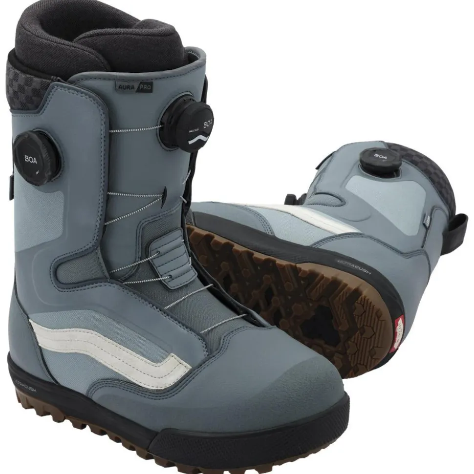 La Vans Aura Pro Stormy Weather est une boots snowboard offrant un contrôle précis avec son double serrage Boa et son flex intermédiaire, idéale pour un ride polyvalent et confortable.