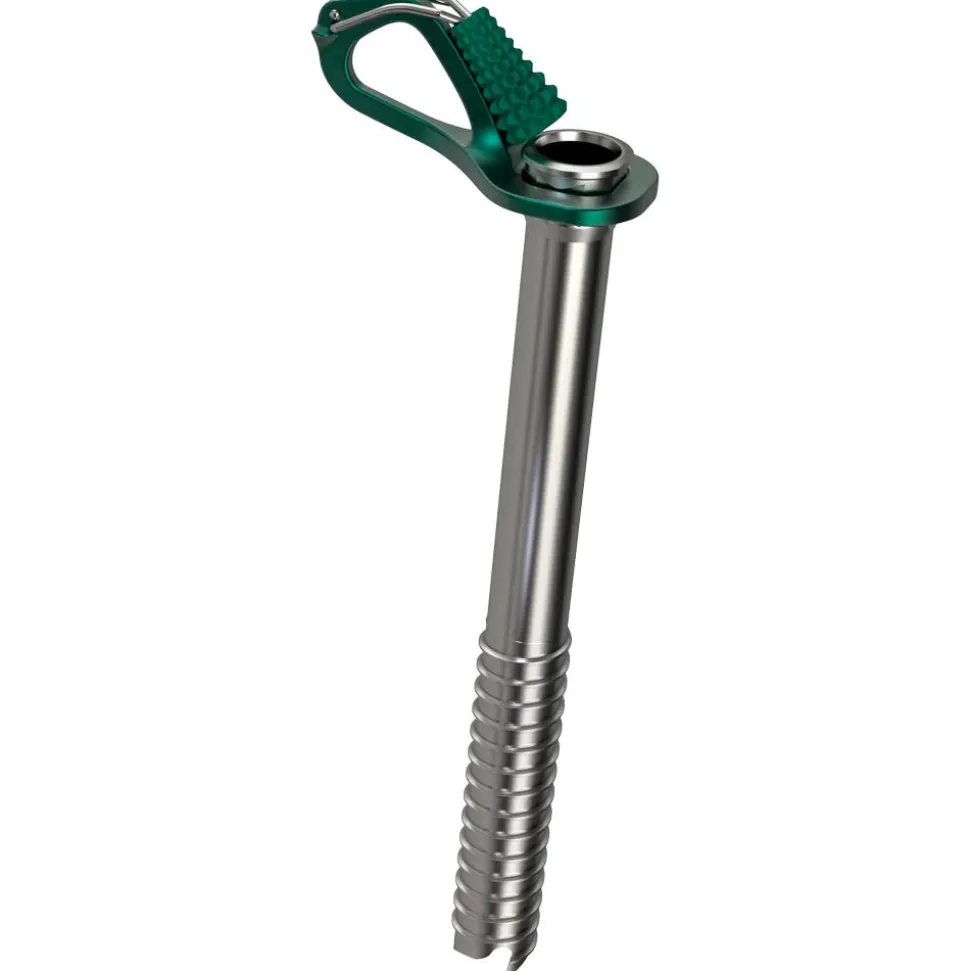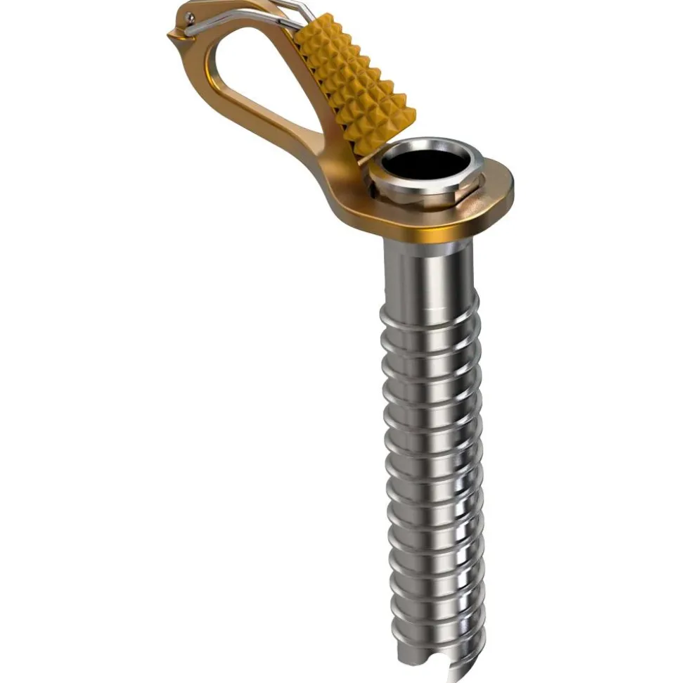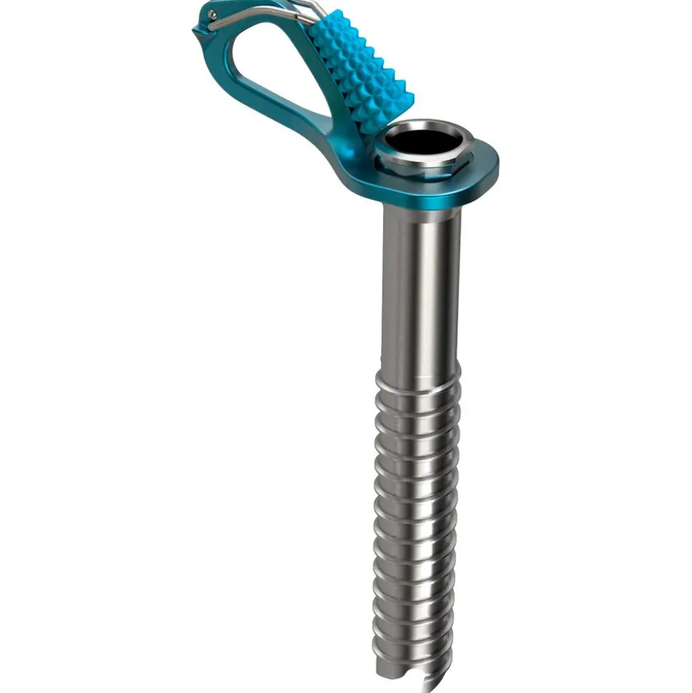 Dotée d’une manivelle qui facilite les manipulations, la broche à glace Aero de Blue Ice offre une accroche fiable grâce à son trépan à 3 dents.