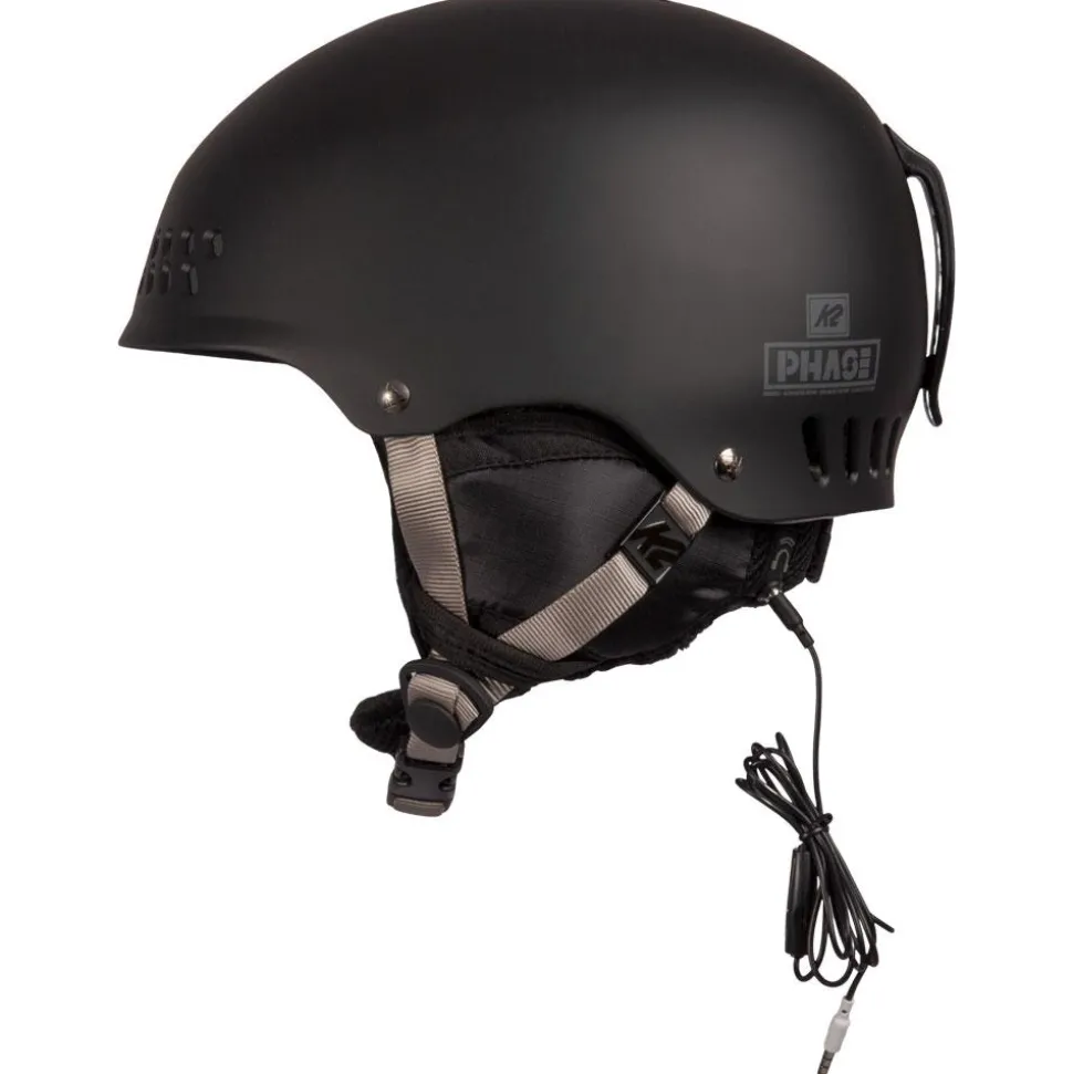 Le Phase Pro est uncasque de skiou de snowboard doté d’unsystème audio intégré. Le Baseline Audio System, inséré à l’intérieur du casque, permet de brancher directement son téléphone ou son lecteur mp3, pour profiter de sa musique sur le télésiège autant que sur les pistes.Côté protection, leK2Phase Probénéficied’une construction Hard-Shell caractérisée par une mousse EPS légère, surmontée d’une coque robuste en ABS. Cetype de construction ayant fait ses preuves,on le retrouve sur nombre de casques de ski. Pour ce qui est duconfort, ce casque profite d’unsystème de ventilation ajustable, d’une doublure amovible et lavable, ainsi qu’un système de réglage en trois points qui favorise lameilleure tenue possible.