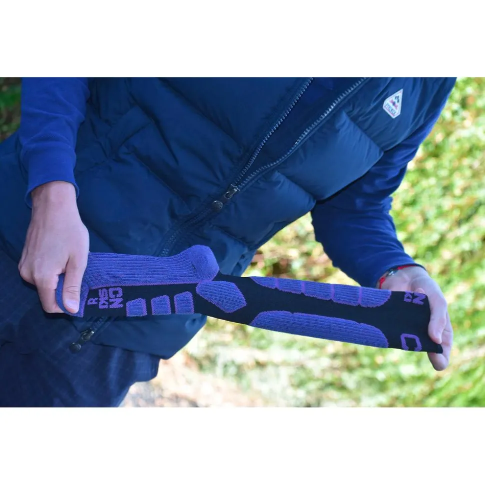 Les chaussettes Curlynak Ski Confort Women Noir Violet offrent un confort optimal pour les skieuses, grâce à leur mélange de laine mérinos et leur construction anatomique.