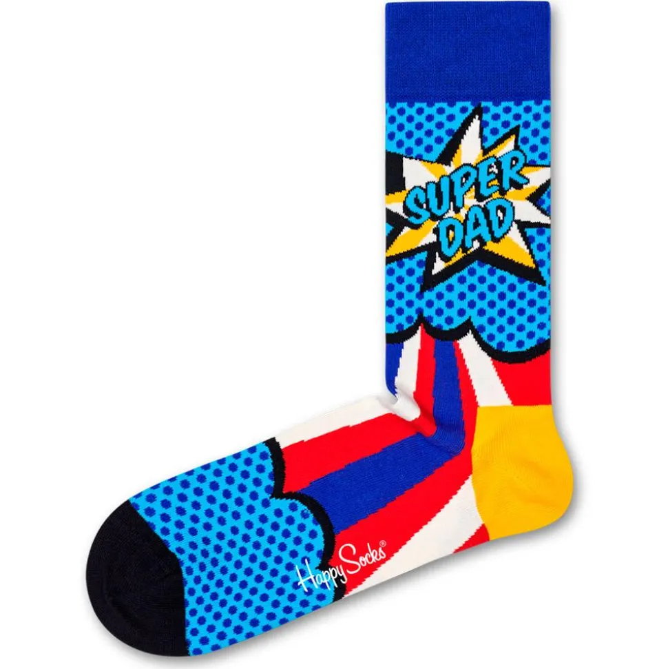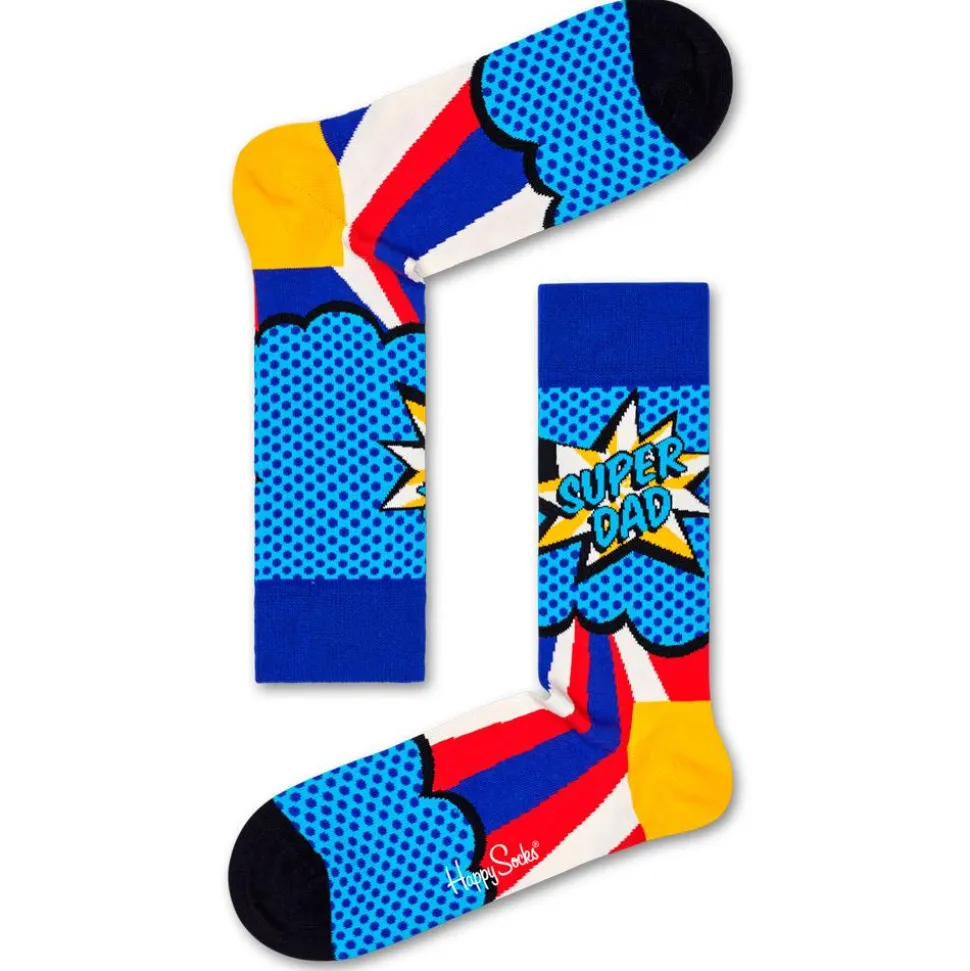 Cadeau de fête des mères, des pères, cadeau de tous les jours, ou cadeau pour vous-même, soyez un super parent avec ces chaussettes Happy Socks en coton respirant. Disponibles en version super mom ou super dad.