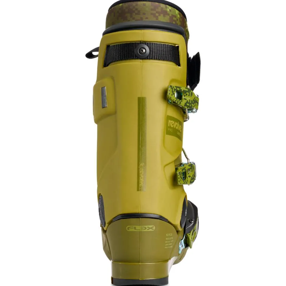 Conçue pour la pratique du freeski, la Revolve Pro s’adresse aux skieurs qui aiment évoluer aussi bien sur les modules du park, en poudreuse et sur piste. Avec son flex de 100, elle se montre précise etréactive, capable de s’adapter à toutes les situations.Ellepermet d’enchaîner les réceptions etfait preuve d’un bon amorti. Le système de serrage, doté de trois boucles robustes et d’un strap large,permet un ajustement précis. Il assure un très bon maintien, lors des manœuvres les plus engagées. Le volume chaussant de 99 mm s’adapte parfaitement à chacun, offrant aux pieds fins le confort souhaité etdavantage de précision aux pieds de largeur moyenne.