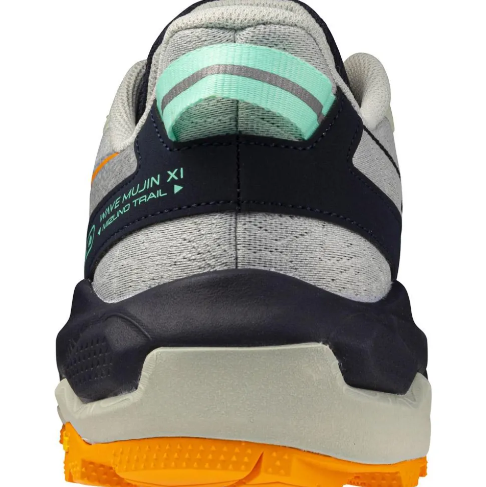 Les chaussures de trail Wave Mujin 11 Mercury Tangelo Tangelo de Mizuno offrent un confort optimal, une grande stabilité et sont idéales pour les longues distances sur terrains variés.