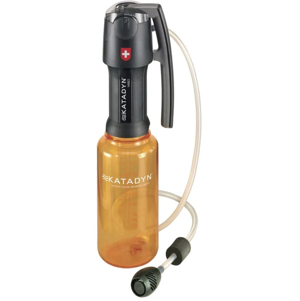 Le Katadyn Vario est un système à pompe de filtration de l’eau. Il s’utilise en eau claire ou en eau turbide. Son volume et son débit de filtration sont pensés pour un groupe de 2 à 5 personnes.