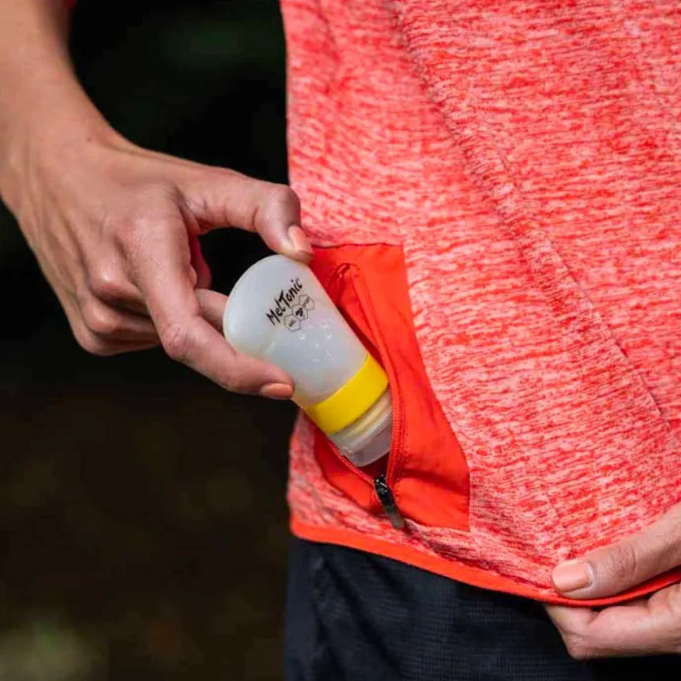 La Fiole Éco Rechargeable 60 ml de Meltonic, conçue ensilicone alimentaire sans BPA. est une option légère, durable et pratique pour transporter 5 doses de gels énergétique.