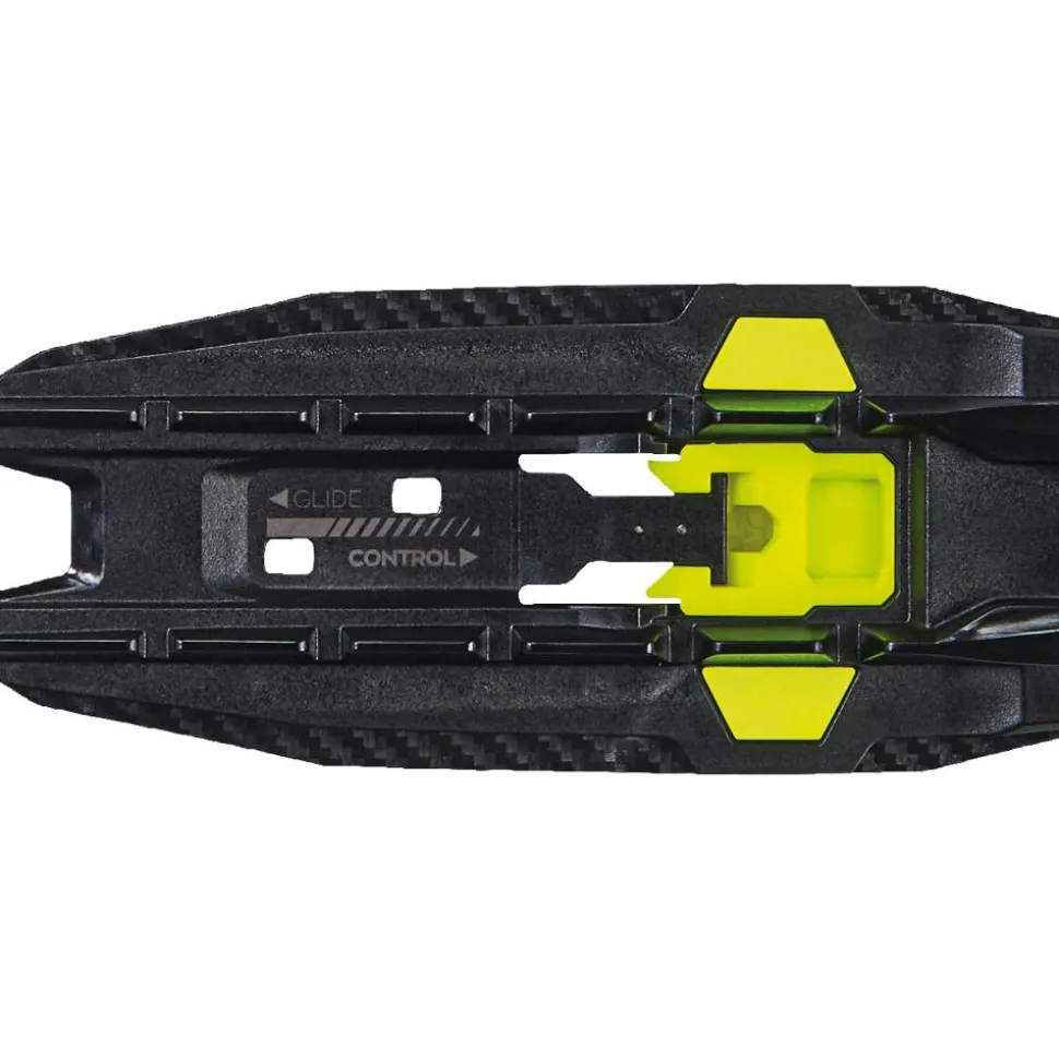 Dernière innovation de la gamme Turnamic, la World Cup Skate répond aux attentes des skieurs les plus exigeants. Sa conception est très proche du modèle Race Pro à une différence près, le levier rotatif qui sert au chaussage est équipé d’un bloqueur. Question manipulation c’est un peu moins simple que sur les autres fixations Turnamic, mais sur ce modèle on recherche avant tout le blocage le plus sûr possible. Pourquoi ? C’est simple, sur les sprints ou courses de masse, le contact d’un ski sur le levier peut le faire tourner et provoquer un déchaussage. Les meilleurs skieurs de chez Fischer ont donc demandé une fixation avec un loquet qui permette d’éviter ce type de désagrément. Pour le reste c’est exactement pareil, la fixation se monte ou se déplace sans aucun outil. La platine large transmet la force des poussées avec efficacité car elle recouvre l’intégralité de l’avant de la semelle. Les deux rails de guidage permettent une très bonne conduite du ski. Une bonne fixation pour les compétiteurs qui ont besoin d’une sécurité supplémentaire.