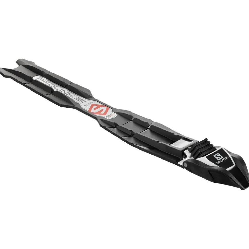 Pour les skis loisir et débutants il est important de fournir des fixations moins rigides et plus tolérantes, c’est dans cette optique que Salomon a conçu cette fixation. Elle profite néanmoins d’une conception à profil bas qui favorise les transferts d’appuis en rapprochant la chaussure du ski. Le système Prolink est devenu en deux saisons la grande référence chez Salomon car il a pour avantage de s’adapter à des chaussures d’autres normes comme NNN et Turnamic. Le tampon Flex 115 est idéal pour le skating car sa rigidité minimise l’écartement entre le ski et la chaussure en fin de poussée latérale.