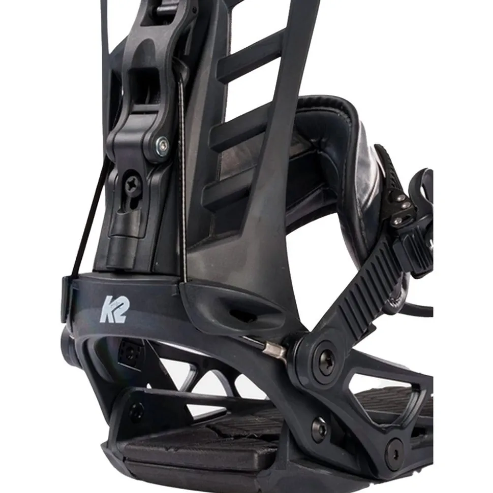 La K2 Cinch TC a la particularité d’être une fixation à double entrée, c’est à dire que vous pouvez aussi bien la chausser par les straps que par le panneau de soutien arrière (spoiler), ce dernier étant abaissable. C’est un gain de temps qu’apprécient de nombreux snowboardeurs. Niveau performance, c’est un modèle facile à rider et évolutif.