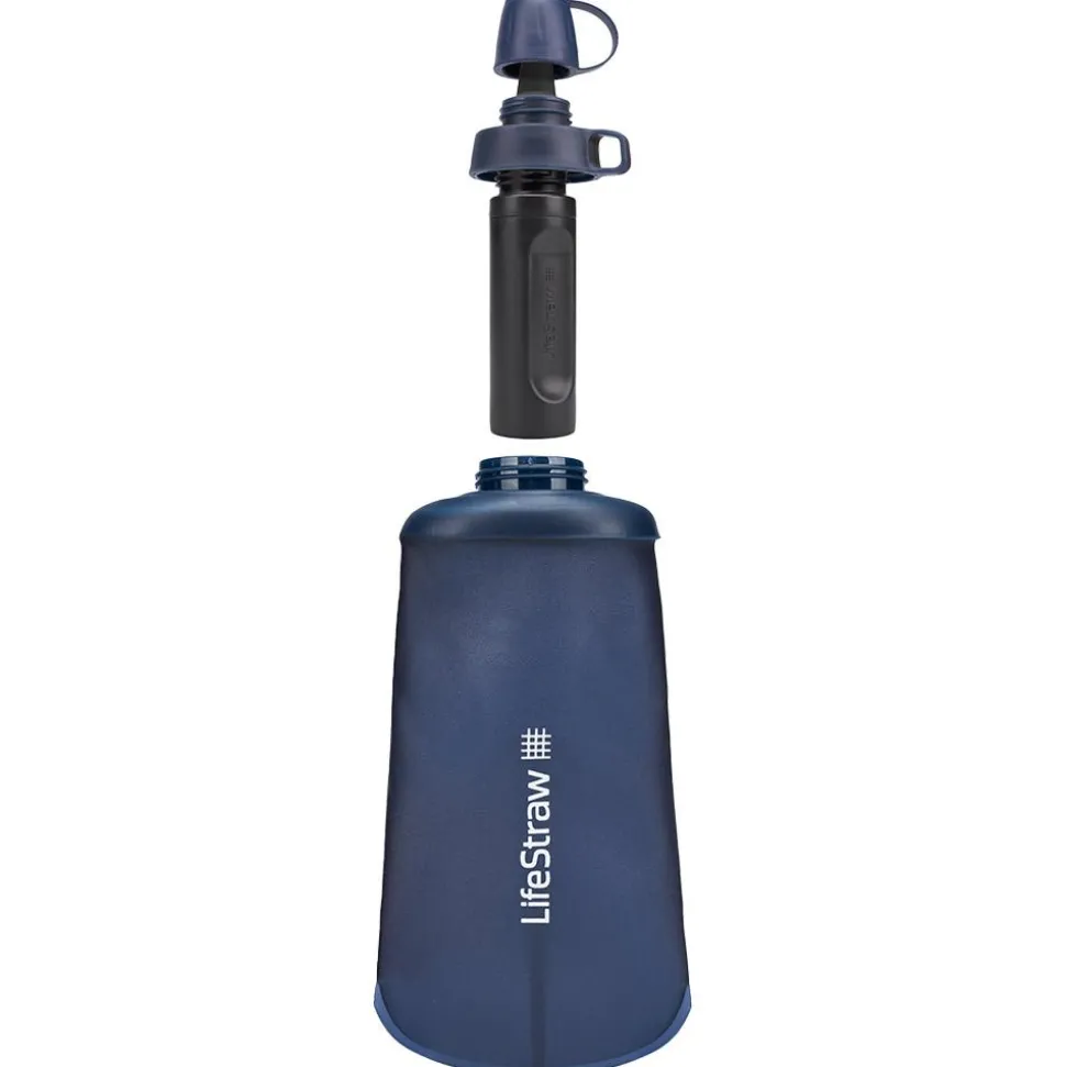 La gourde LifeStraw Collapsible Squeeze Bottle 650ml Mountain Blue est souple et compacte afin de la tranporter facilement. Sa membrane filtrante permet de filtrer jusqu’à 2 000 litres d’eau.