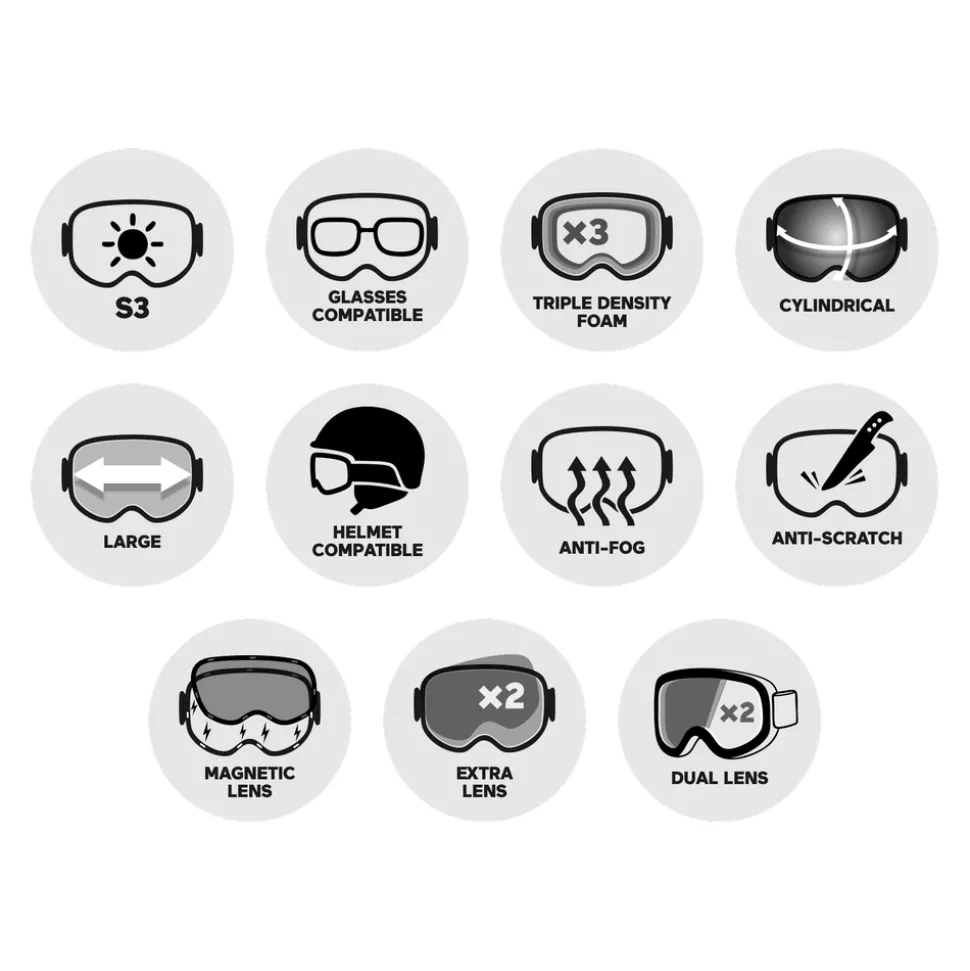 Technologie d’écran HDDouble écran avec protection anti-rayuresCompatible avec le port du casqueTraitement anti-buée et anti-rayuresEcran cylindriqueMousse triple densité -
