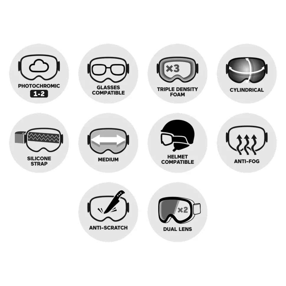 Ce masque est équipé d’un écran photochromique, allié précieux en montagne lorsque la météo est changeante. Sa teinte s’adapte à la luminosité ambiante afin d’offrir une vision optimale tout au long de la journée. Elle varie de la catégorie 1 à 2, étant aussi efficace lorsque les éclaircies alternent avec un ciel nuageux que quand il y a de la brume ou du brouillard épais au point de connaître l’effet jour blanc.