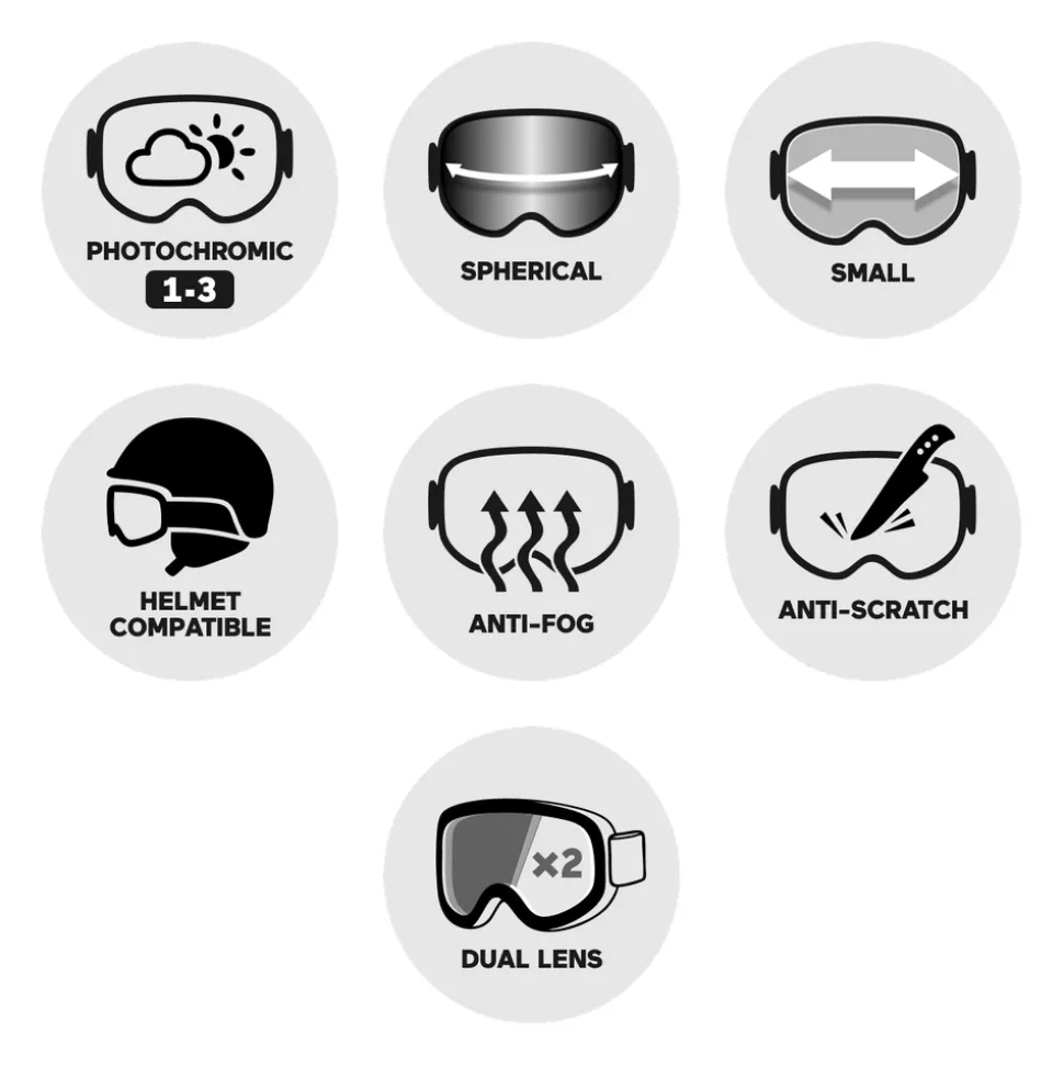 Double écran avec protection anti-rayuresEcran ventiléEcran sphériqueTraitement anti-buée et anti-rayuresMousse mono-densité hypoallergéniqueEcran perforé pour améliorer la ventilationCompatible avec le port du casque -