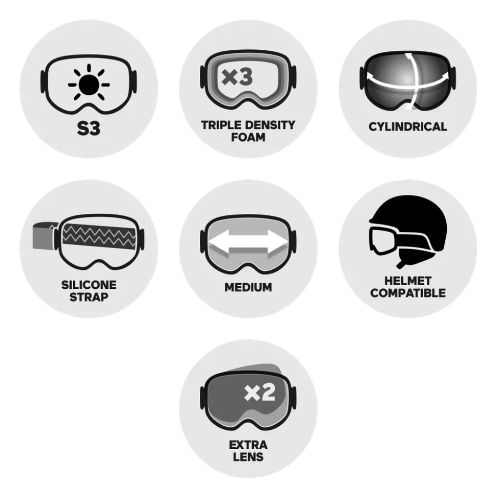 Strap siliconéEcran cylindriqueMousse triple densitéCompatible avec le port du casque -