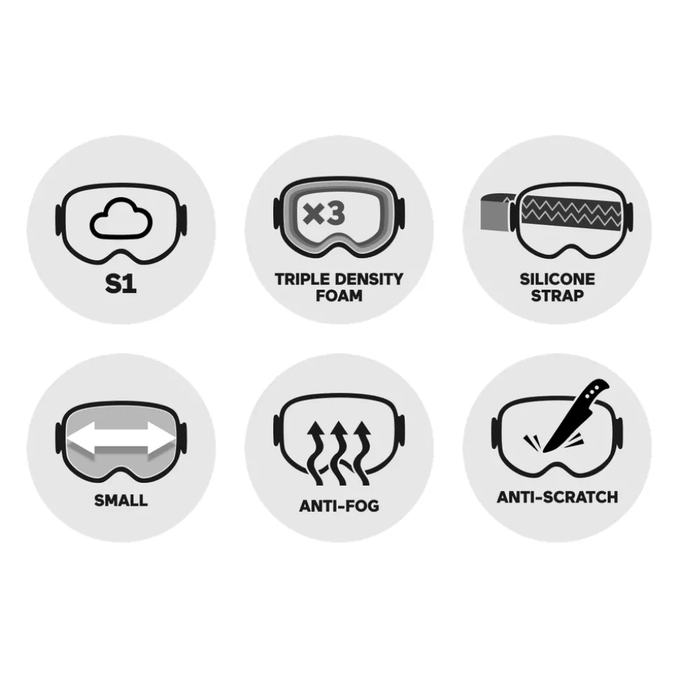 Technologie HDO®Châssis Flexible O-Matter®Traitement anti-buée et anti-rayuresMousse triple densitéLarge strap siliconé -