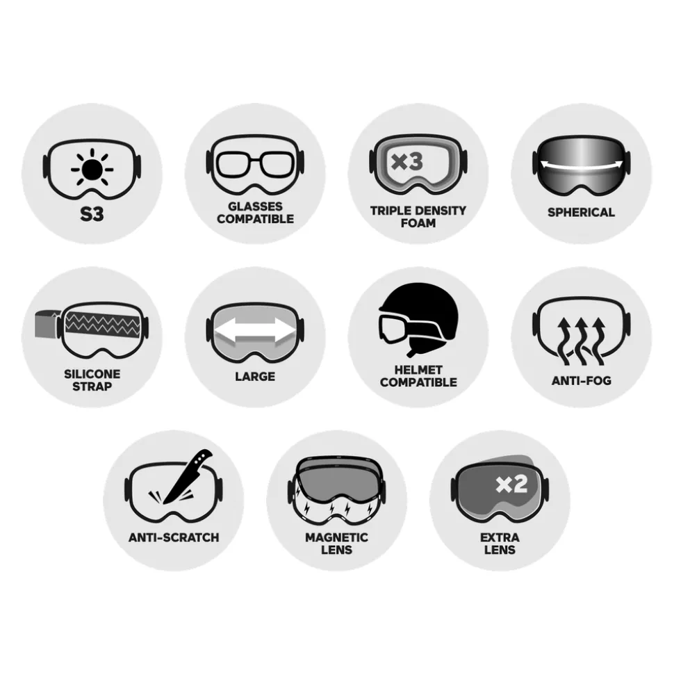 Custom Id FitChamp de Vision LargeEcran sphériqueCompatible avec le port du casqueVision MaximaleStrap siliconéMousse triple densitéTraitement anti-buée et anti-rayuresEcran Facilement Interchangeable -