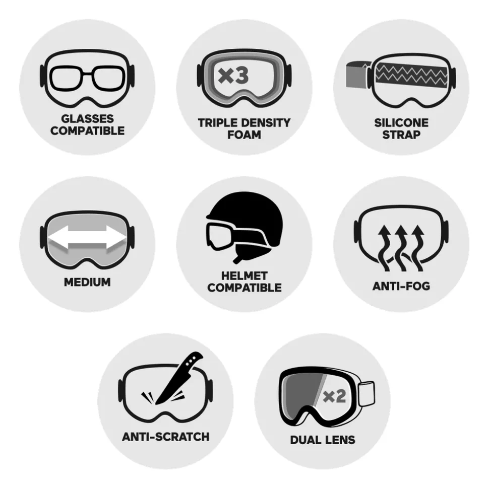 Flex FrameCompatible avec le port du casqueStrap siliconéMousse triple densité -
