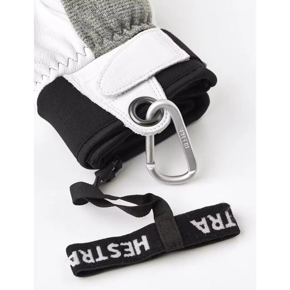 La marque Hestra présente les Army Leather Patrol Female Mitt Light Grey, des moufles pour femme conçues pour le ski alpin, offrant chaleur, confort et maniabilité.