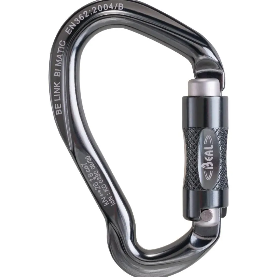 Le mousqueton Beal Be Link BiMatic Matte Gris offre une prise en main intuitive, un verrouillage efficace et une forme asymétrique idéale pour l’assurage ou la progression.
