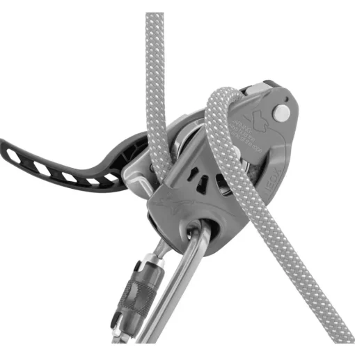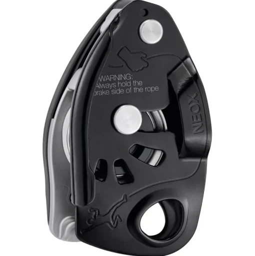 L’assureur Petzl Neox allie sécurité et fluidité, facilitant la descente grâce à une roue intégrée, idéal pour les grimpeurs exigeants.