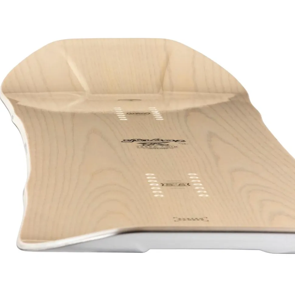 Cambre Plat : Le cambre plat pardonne plus facilement les erreurs qu’un cambre classique tout en restant plus stable qu’un cambre inversé. Il est plat entre les jambes et inversé en nose et en tail pour gagner en tolérance, mais aussi en déjaugeage et en portance en poudreuse. Un bon compromis pour ceux qui ne sont pas sûrs d’eux à 100%.