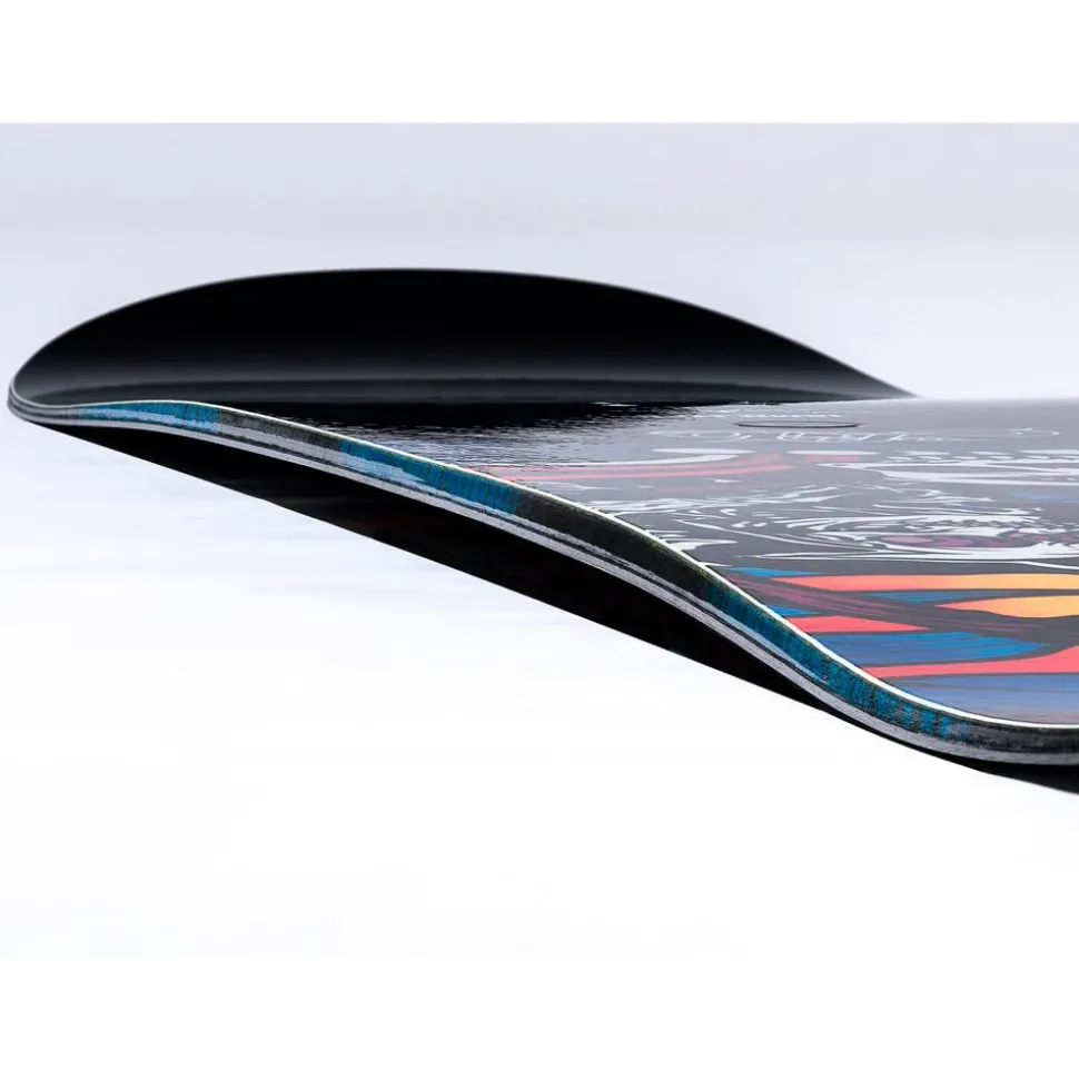 Cambre Plat : Le cambre plat pardonne plus facilement les erreurs qu’un cambre classique tout en restant plus stable qu’un cambre inversé. Il est plat entre les jambes et inversé en nose et en tail pour gagner en tolérance, mais aussi en déjaugeage et en portance en poudreuse. Un bon compromis pour ceux qui ne sont pas sûrs d’eux à 100%.