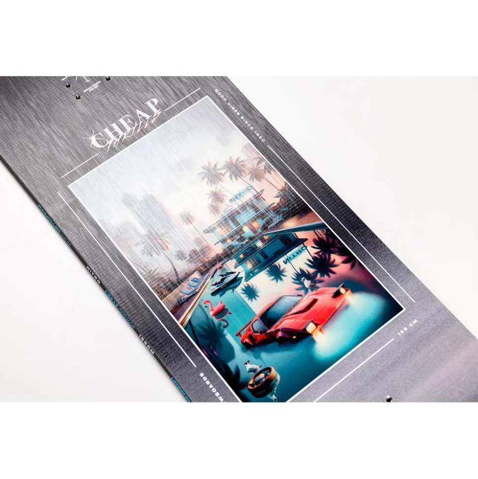 La Cheap Thrills est une véritable twin tip dédiée au freestyle, conçue pour être aussi performante en switch qu’en regular. Sa souplesse en spatules facilite les press et permet une grande liberté dans toutes les figures de jib. Elle s’adresse particulièrement aux riders qui aiment rider avec un stance duck (type -15 / +15) pour enchaîner les rotations et les passages en switch. Son cambre plat assure une bonne accroche sans être trop exigeant, ce qui la rend aussi à l’aise sur piste que dans la poudre légère ou la neige de printemps. Chaque longueur est pensée avec un noyau spécifique pour optimiser le flex et le ressenti sous les pieds. La construction Whiplash renforce le pop en ollie, tandis que les carres Railkiller renforcées garantissent résistance et solidité sur les rails, boxes et modules du park.