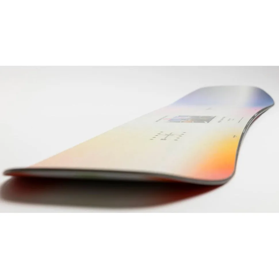 Cambre Plat : Le cambre plat pardonne plus facilement les erreurs qu’un cambre classique tout en restant plus stable qu’un cambre inversé. Il est plat entre les jambes et inversé en nose et en tail pour gagner en tolérance, mais aussi en déjaugeage et en portance en poudreuse. Un bon compromis pour ceux qui ne sont pas sûrs d’eux à 100%.