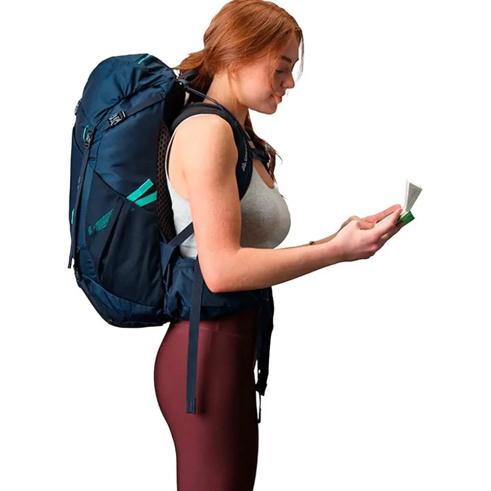 Le sac à dos pourfemme Amber 34Activ Navy deGregoryest spécialement conçu pour partir plusieurs jours en randonnée tout en gardant une confort de port et liberté de mouvement.