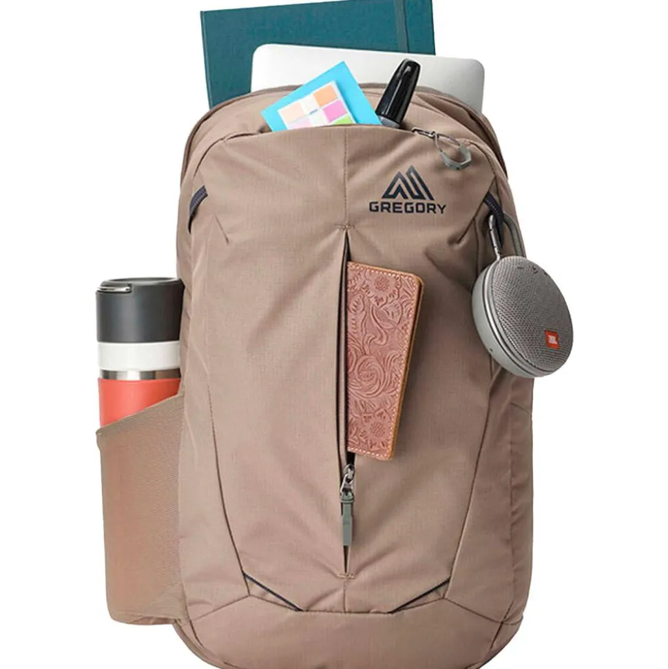 Le sac à dos Retna 25 Mirage Tan de Gregory, léger et fonctionnel, se distingue par son volume de 25 litres et sa conception en polyester recyclé à 100%.