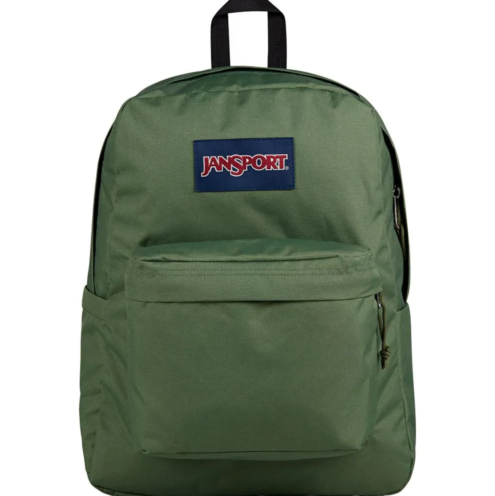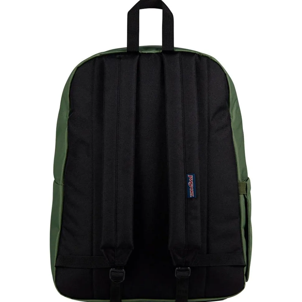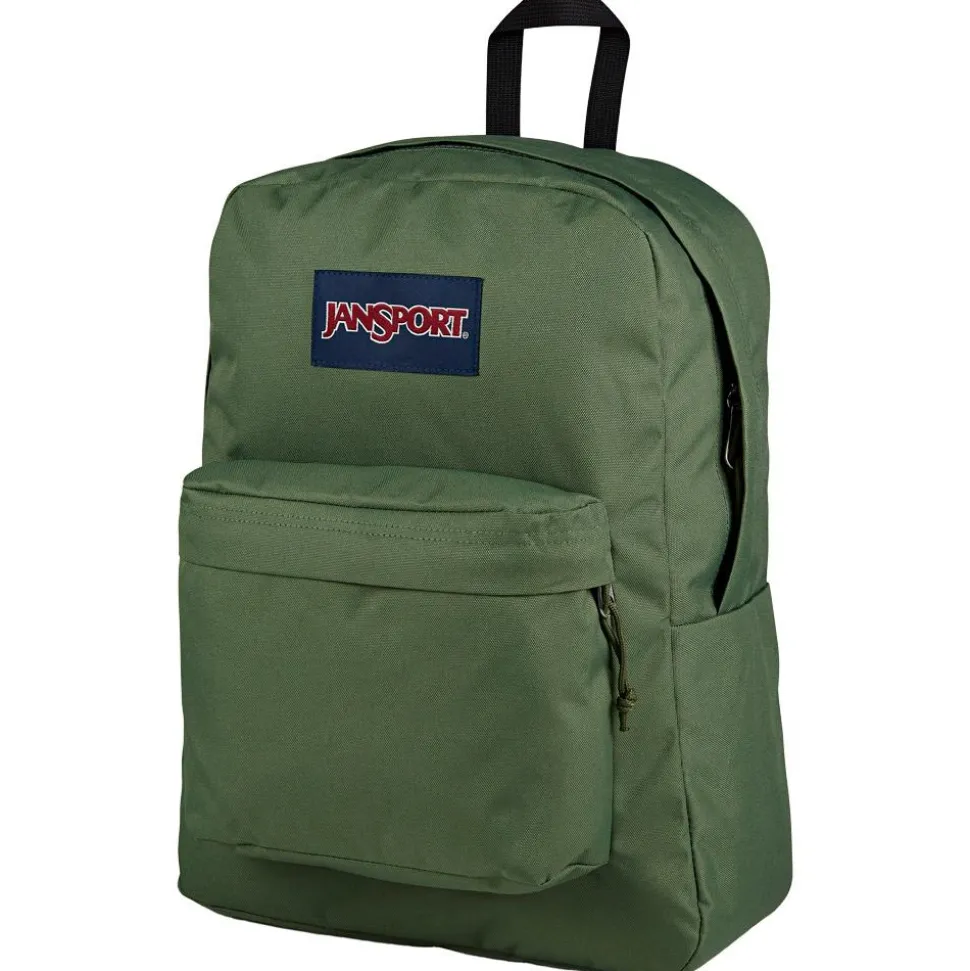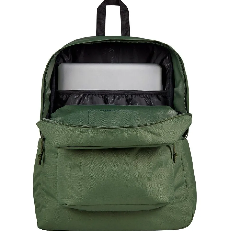 Le sac à dos Jansport Superbreak Plus 26L Cargo Green, fabriqué en polyester recyclé, est idéal pour le quotidien des étudiants et salariés.