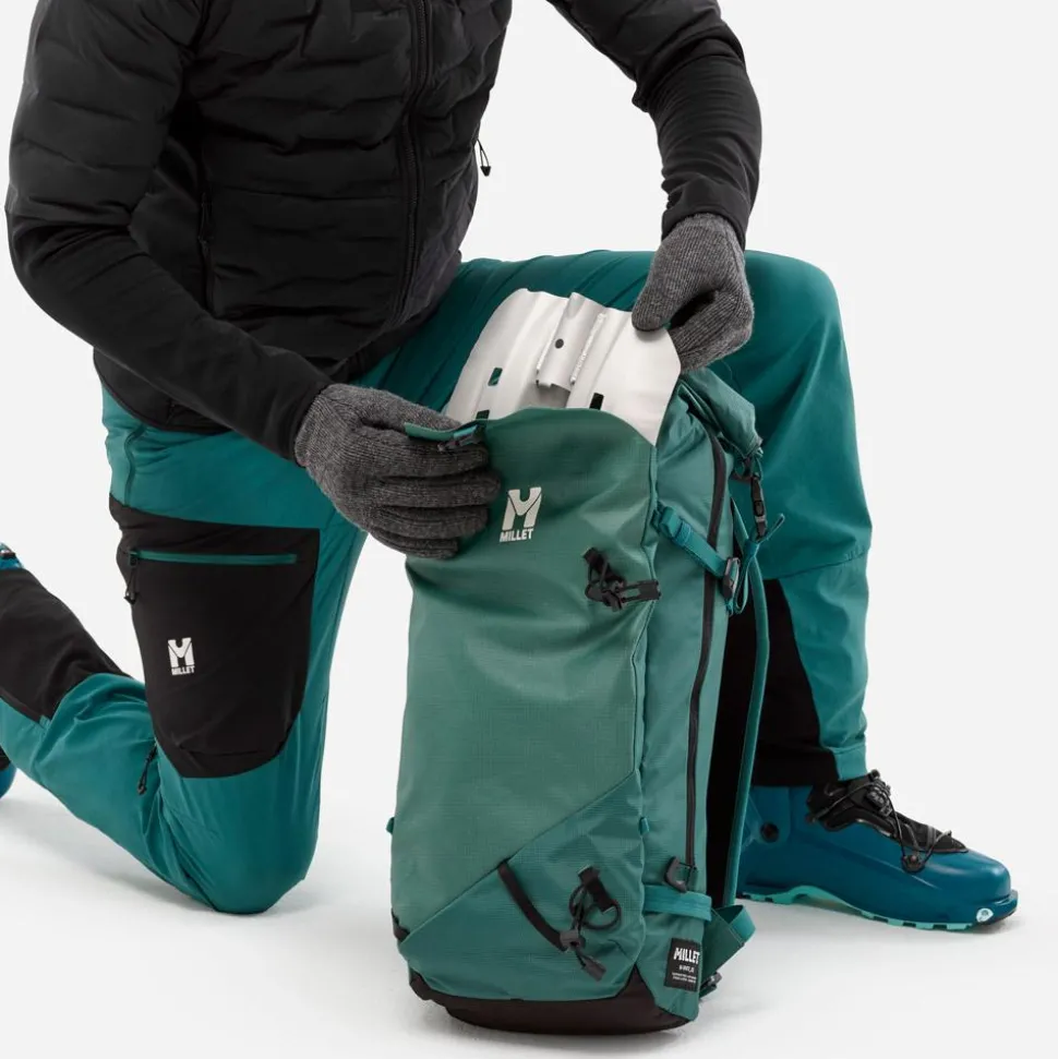 Le sac à dos M White 22 Bottle de Millet accompagne les skieurs avec praticité, confort et organisation pour transporter tout le matériel essentiel en montagne.