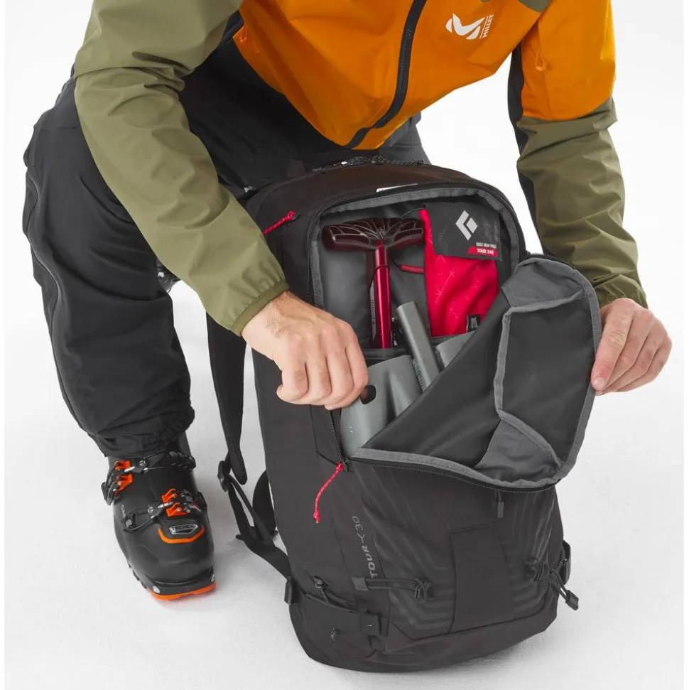 Porte skiCompatible hydratationSangle de poitrinePoche masqueCeinture abdominaleCompartiment pelle et sondePorte-bâtonsPorte pioletCompartiment bouteille -