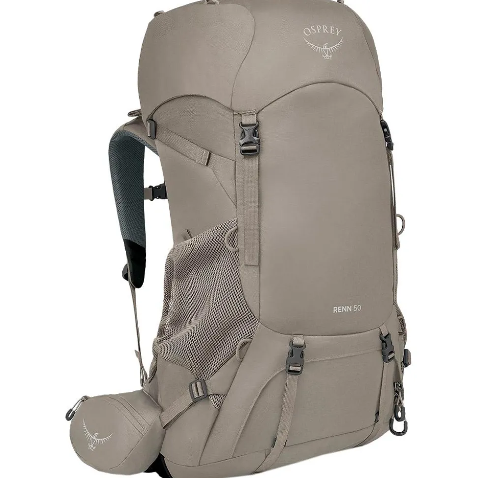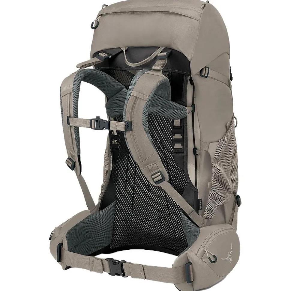 L’Osprey Renn 50 Pediment Grey Linen Tan est un sac à dos de randonnée ergonomique de 50 litresavec un système de ventilation AirSpeed et de multiples compartiments.
