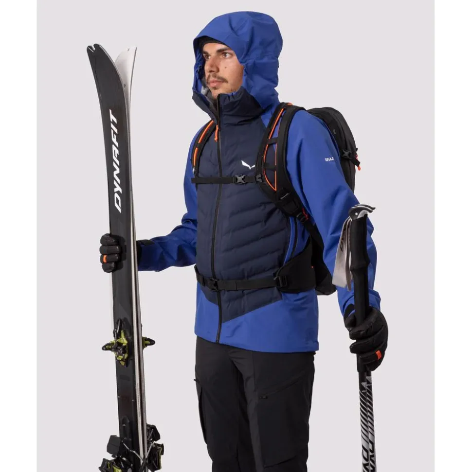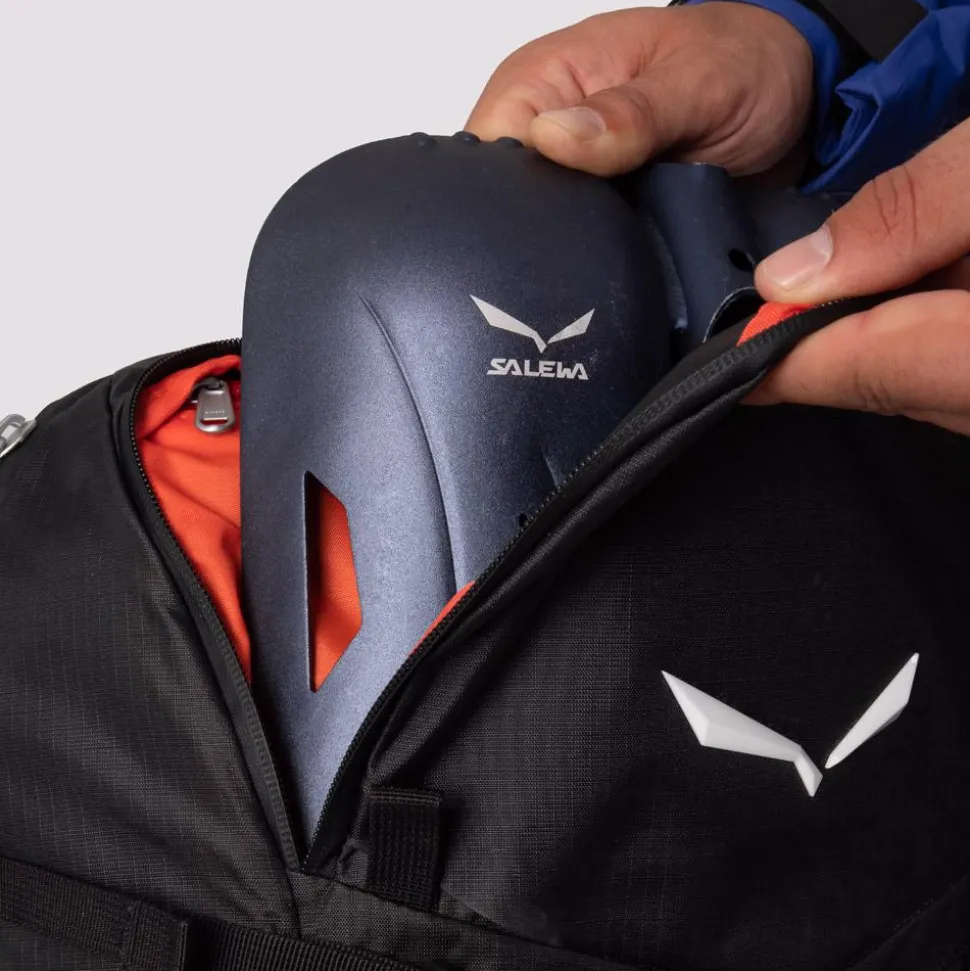 Les adeptes du freeride et du ski touring apprécieront les caractéristiques pratiques telles que le porte-piolets et le filet pour casque, ainsi que le compartiment dédié au matériel de sécurité. L’ergonomie n’est pas en reste avec un système dorsal Dry Back Contact qui épouse parfaitement la morphologie, accompagné d’un rembourrage EVA doté de canaux de ventilation 3D pour un confort maximal durant l’effort. La ceinture abdominale zippée et la sangle pectorale ajustable garantissent une répartition équilibrée du poids.