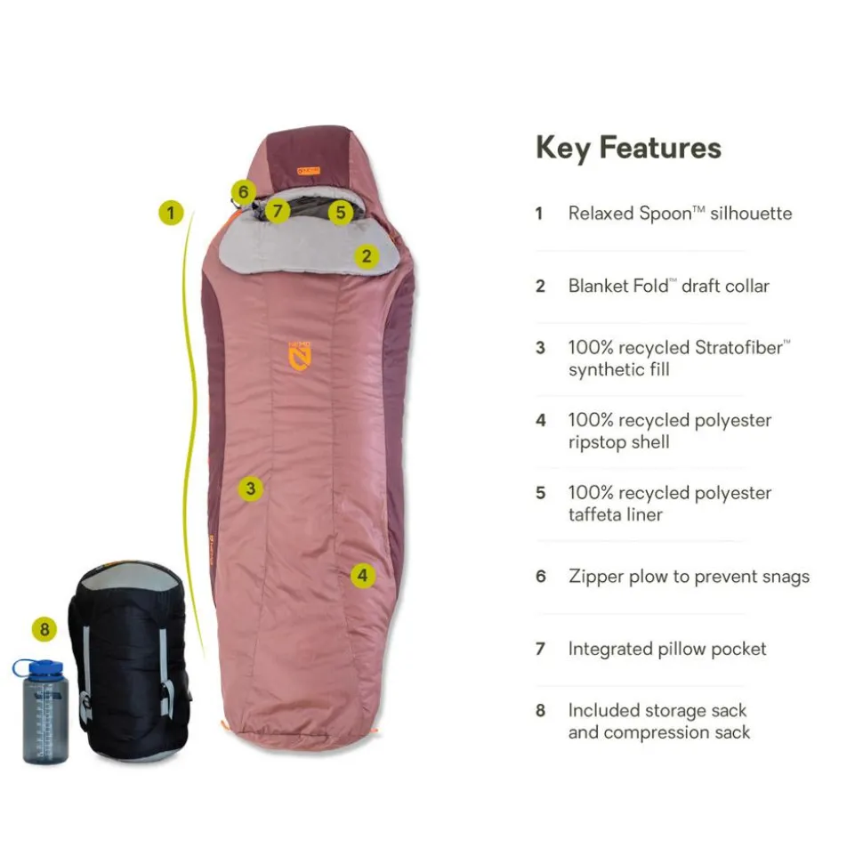 Le Nemo Tempo Women’s 35 Twilight Mauve Paloma Gray est un sac de couchageconfortable, chaud et conçu en matériaux recyclés, idéal pour les nuits fraîches en pleine nature.