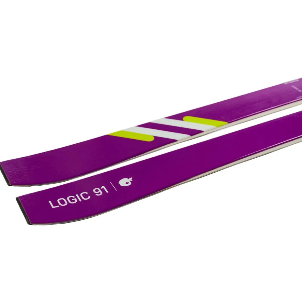 Avec son volume, son cambre et son double rocker, le Logic 91 offre une très bonne accroche sur neige dure et une excellente déjauge dans la poudreuse. Son volume lui permet même de passer sans problème sur les sections de neige molle en restant bien à la surface. En montée, sa construction est légèreafin de réaliser des ascensions rapides et efficaces. Enfin, ses renforts triple axe fibre+titanalapportent beaucoup de stabilité à haute vitesse et de la rigidité en torsion pour avoir beaucoup de rebonds en sortie de virage.