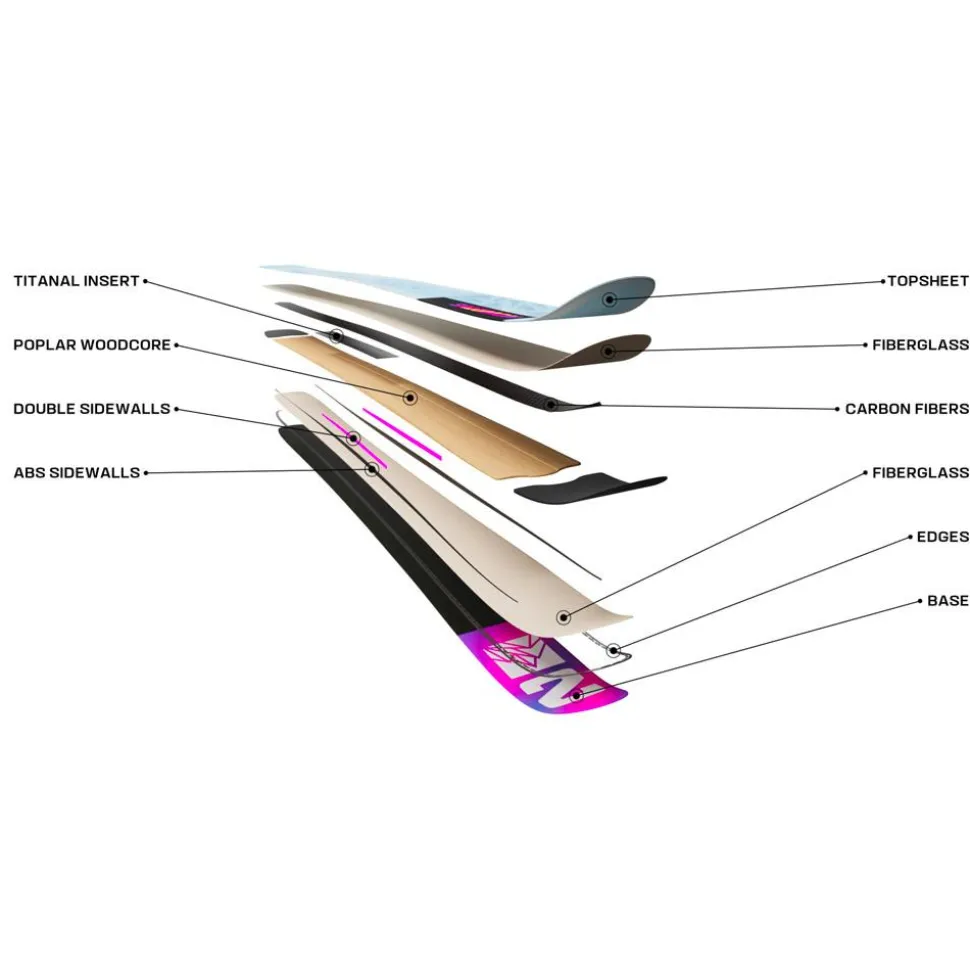 Ce ski possède une structure sandwich intégrale pour plus de rigidité et une accroche du talon à la spatule. Son noyau en bois de peuplier est renforcé par des inserts en titanal pour apporter plus de tonicité et de précision. Sur neige damée, son profil cambre classique lui donne de la précision et une bonne réception de sauts tandis que son double rocker facilite les enchaînements de virages et la flottaison en poudreuse. Vous pouvez donc passer de la piste aux bordures de ces dernières sans aucun problème.