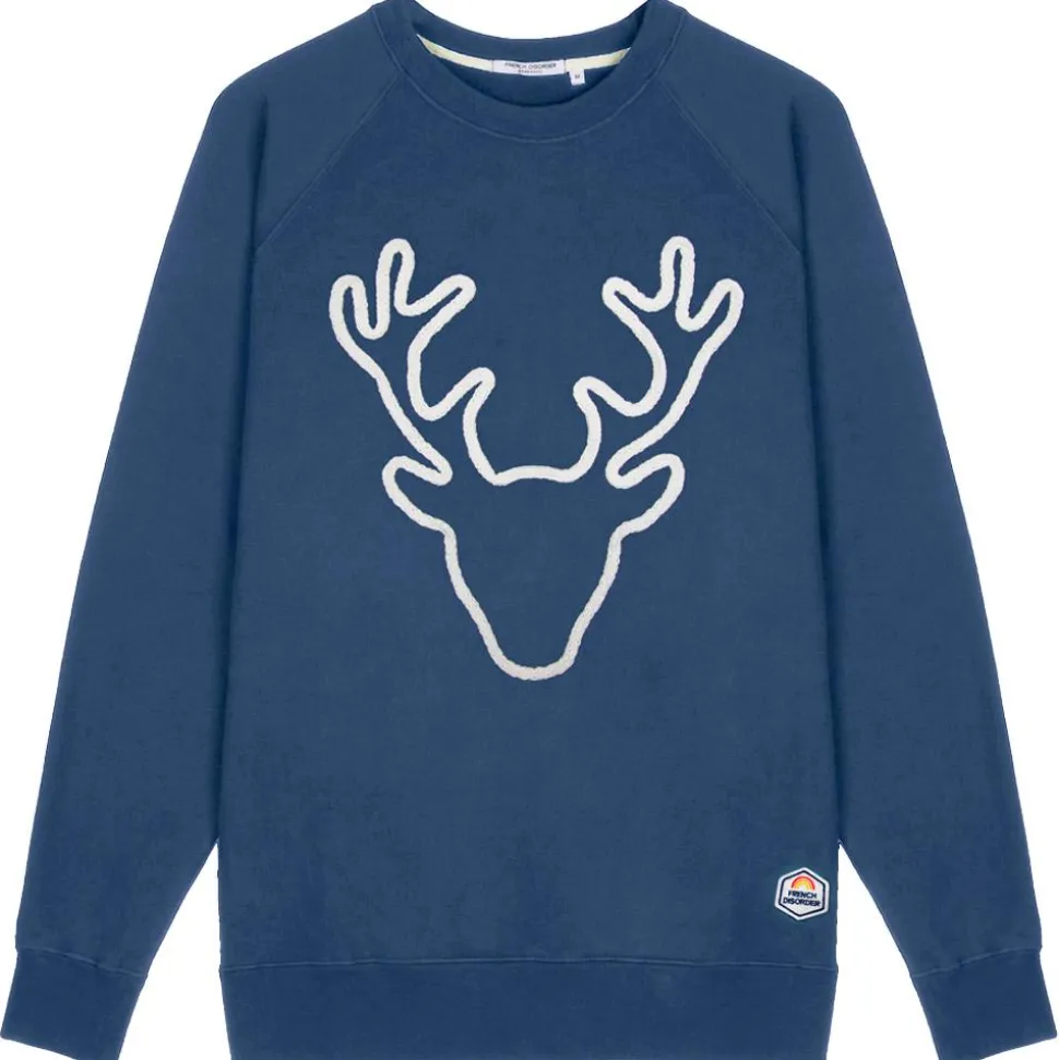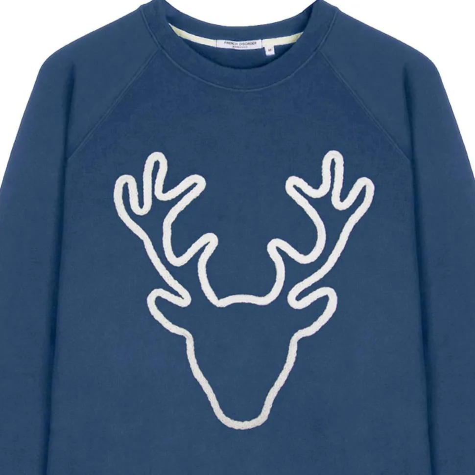 Le sweat Clyde Rudolph (Tricotin) Navy de French Disorder, fabriqué en coton, offre confort et qualité avec une broderie soignée.