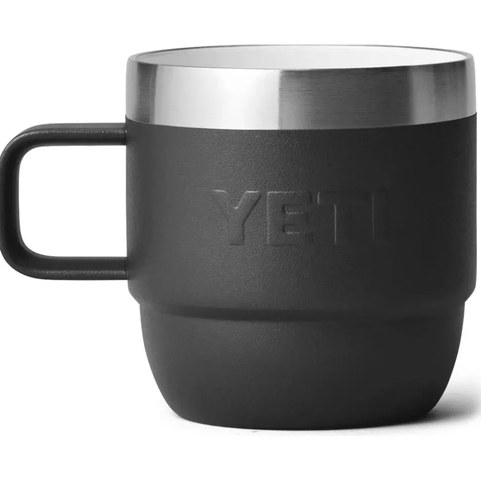 Le Yeti Rambler Espresso Mug 6 Oz Black est un duo de mugs en acier inoxydable, empilables, au design élégant, garantissant une boisson chaude plus longtemps et un nettoyage facile au lave-vaisselle.