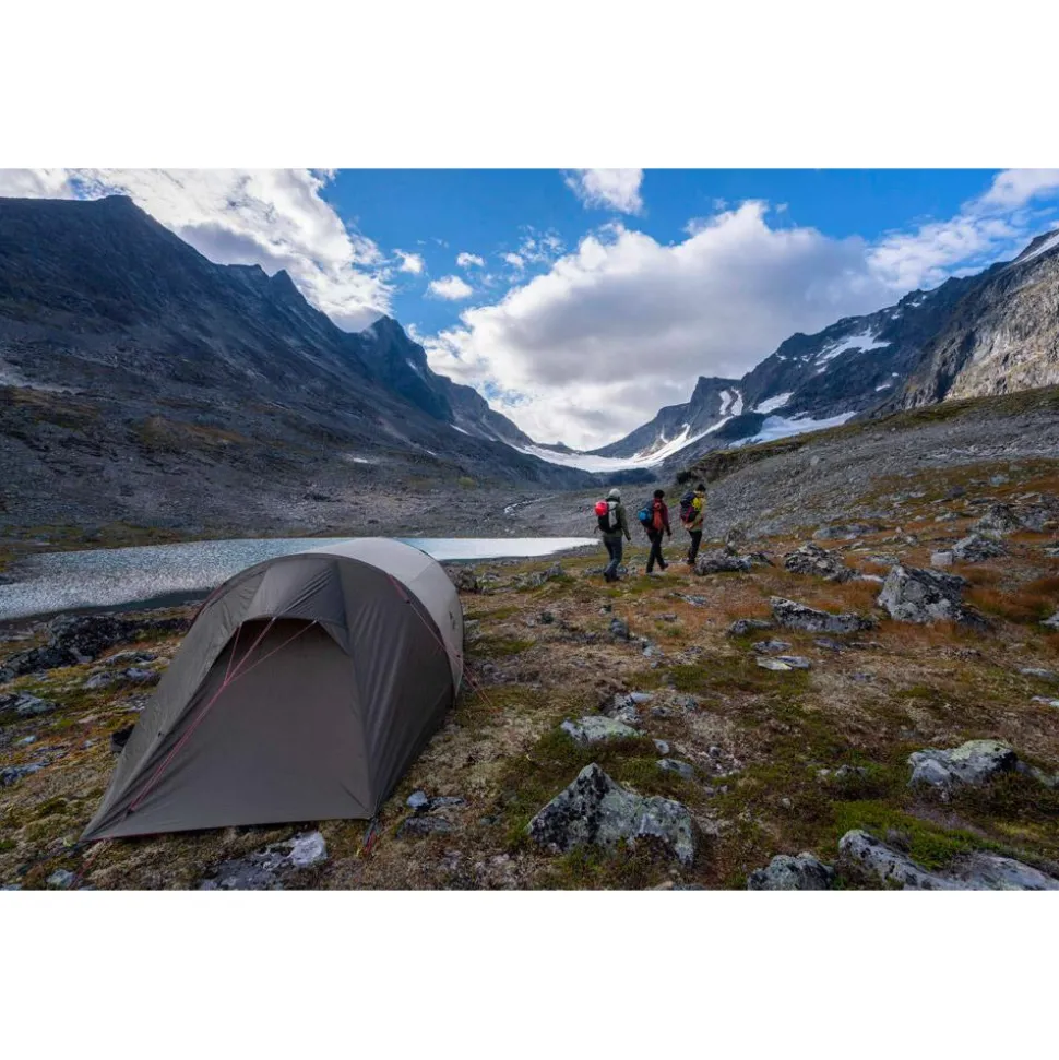 Conçue pour camper le temps d’un week-end ou pour bivouaquer lors d’une courte randonnée en itinérance, la tente 3 saisons MSR Tindheim 2 offre un grand volume dans lequel se mettre à l’abri.