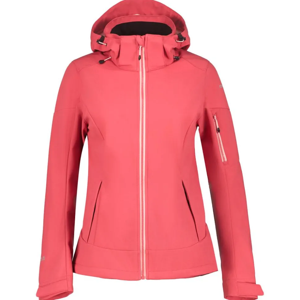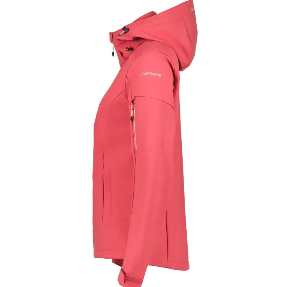 La veste de rando Icepeak Bathgate Framboise, imperméable et respirante, avec traitement DWR éco, est idéale pour affronter les éléments en montagne avec confort et praticité.