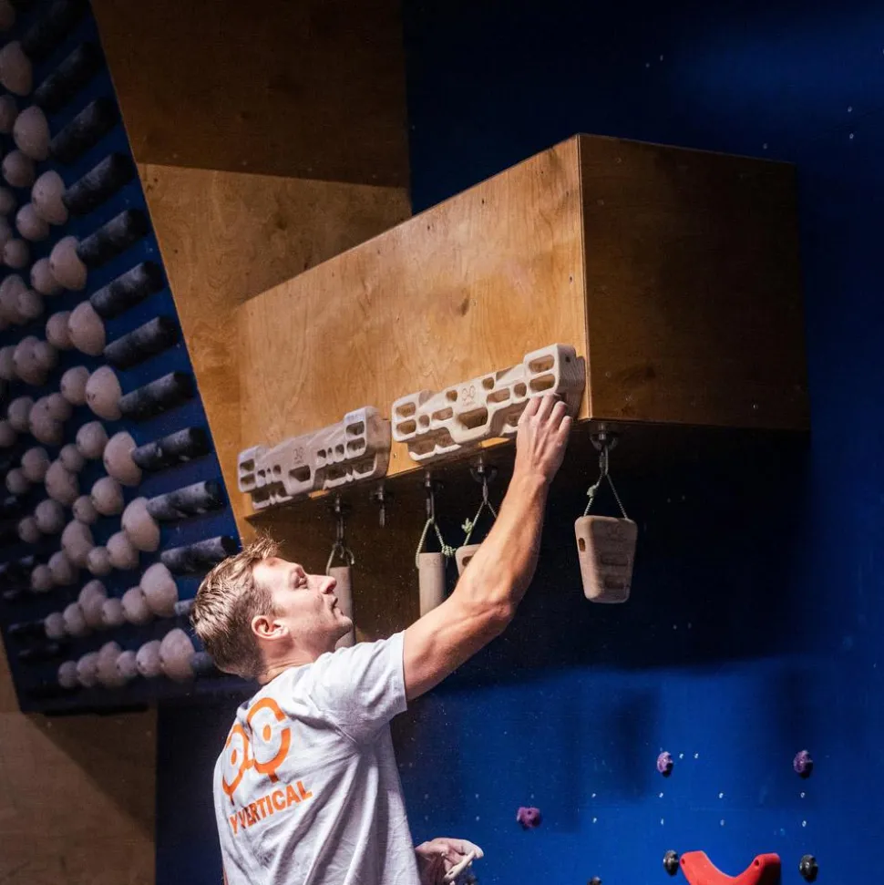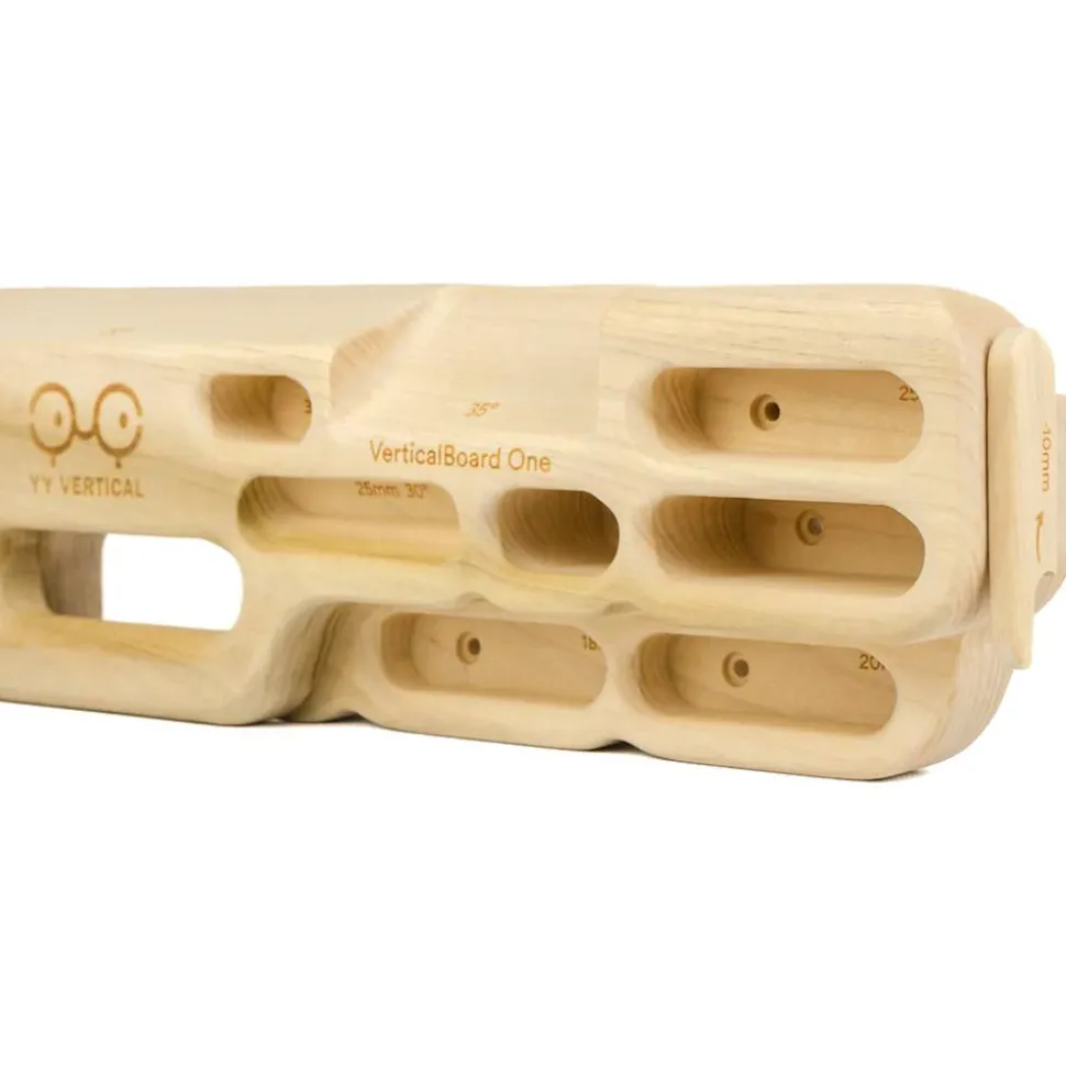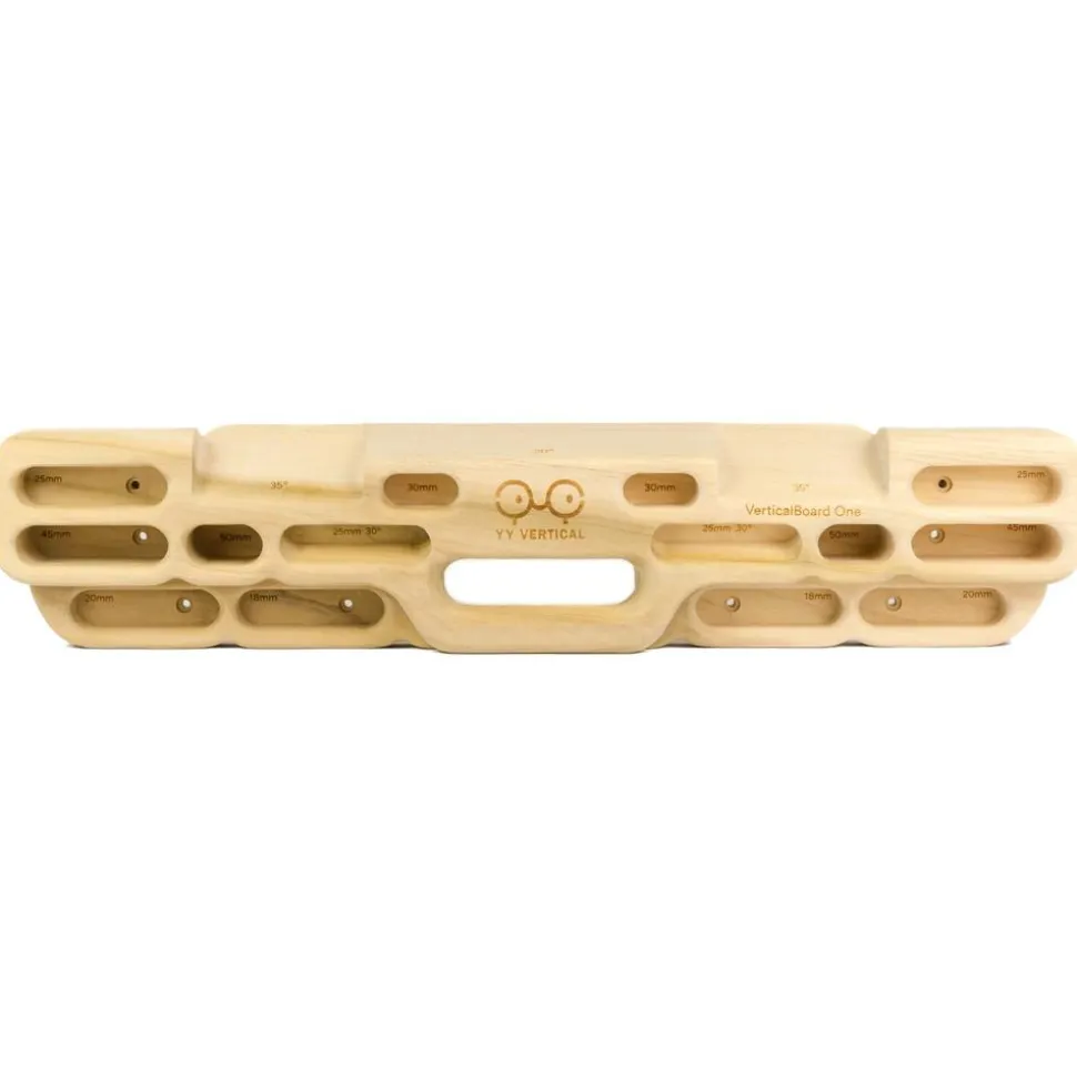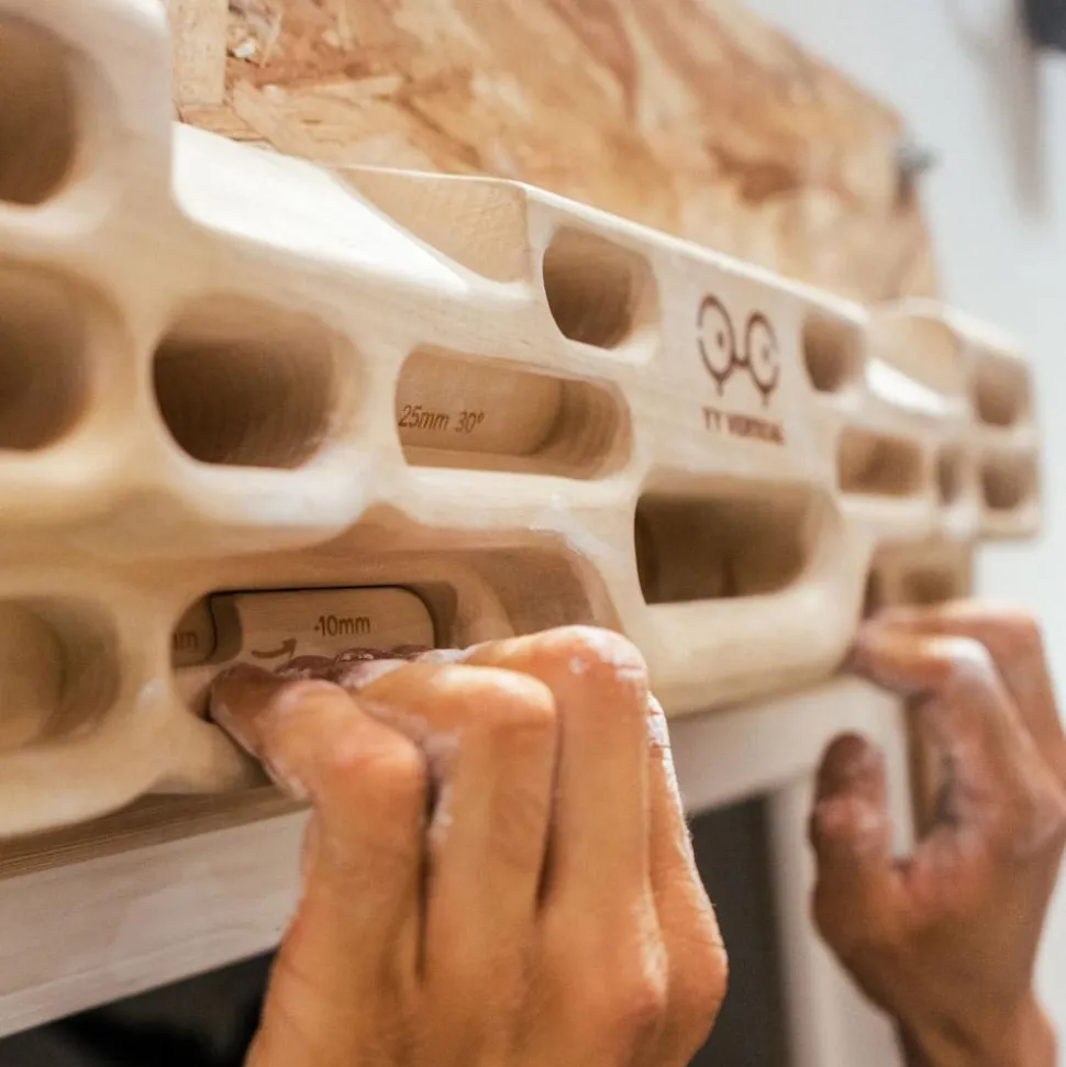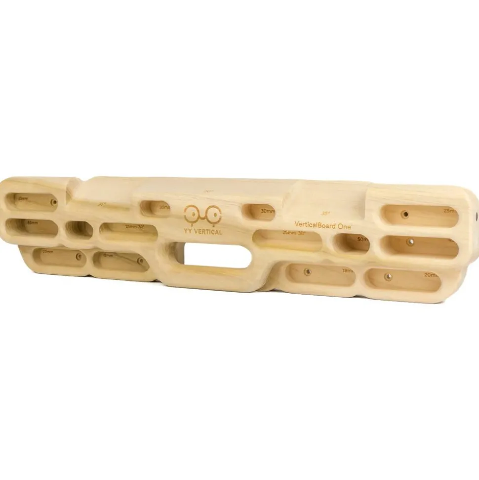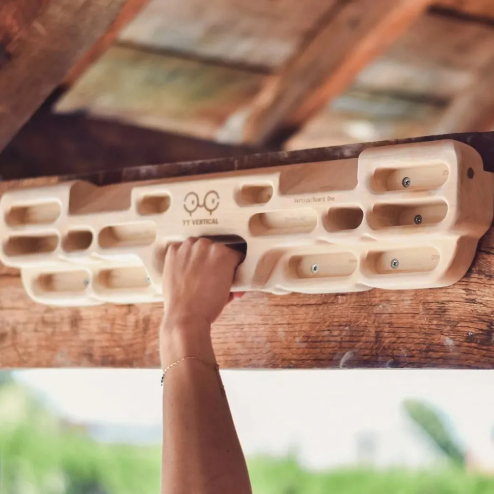 La Verticalboard One de YY Vertical est une poutre d’entraînement en bois de peuplier avec différentes tailles de préhension. Elle peut être fixée sur un mur ou une poutre et est équipée de cales magnétiques pour ajuster la difficulté.